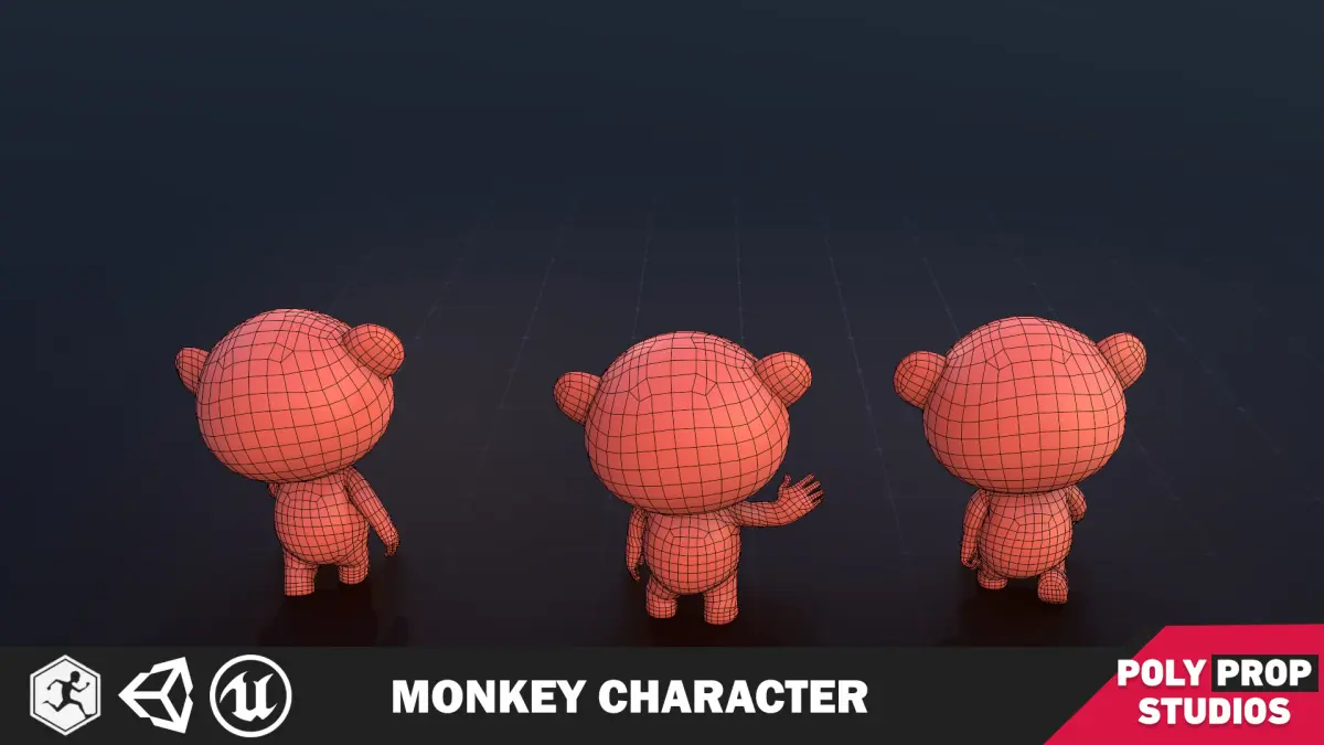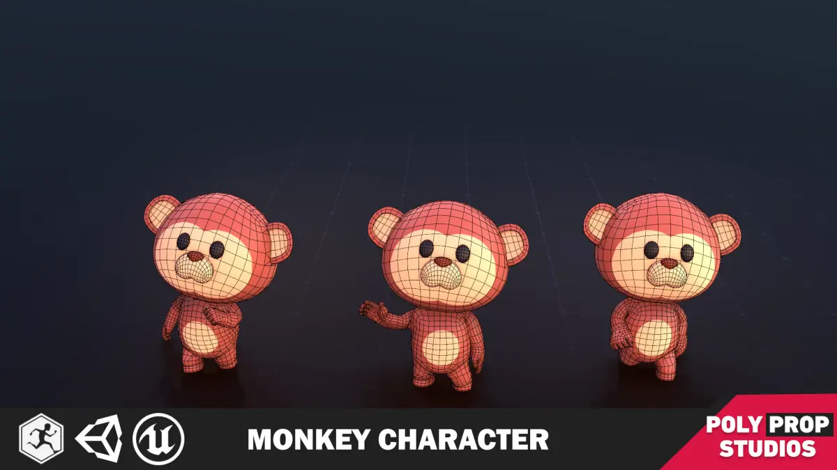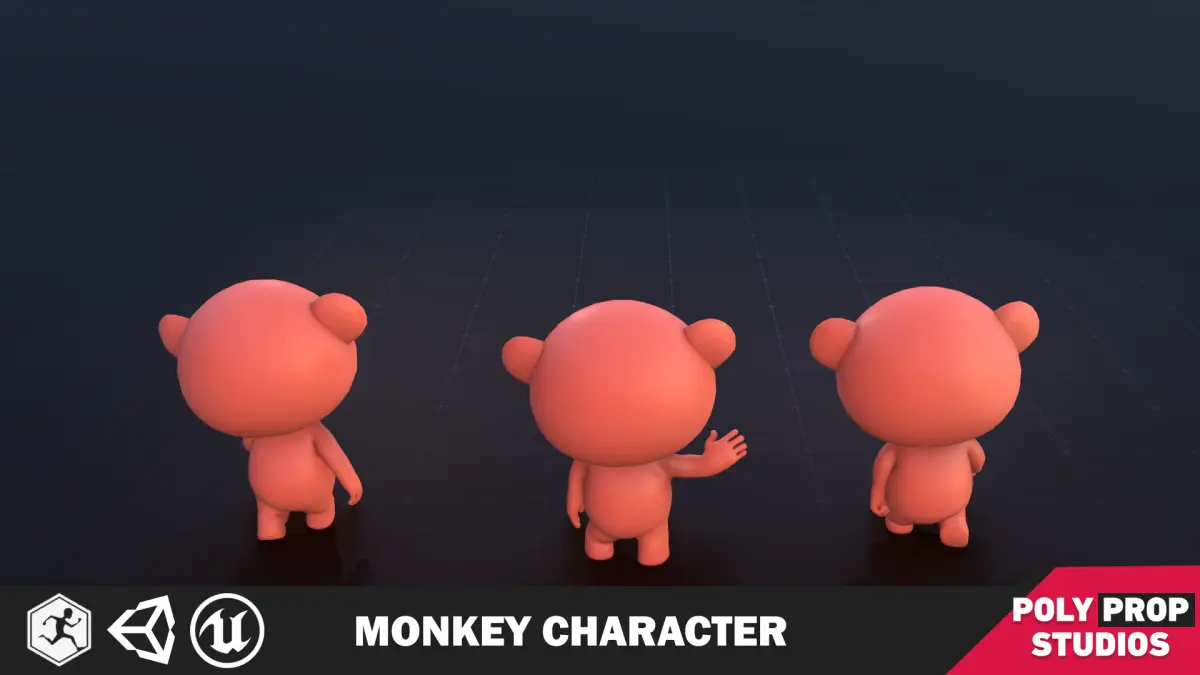 Monkey Character /Game Ready /Rig/ All Animation MİXAMO Textures: Base Color/Metallic/Roughness/ AO MapTexture&Polygon:Monkey: 2048x2048 (Polygon: 3020 Verts: 3060)