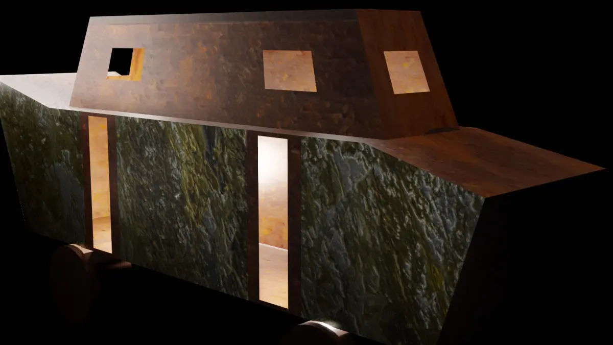 2K textures: BaseColor, Normal, Metalness, Roughness. 3 types of materials (rust metal, wood, stone) were baked in textures maps.