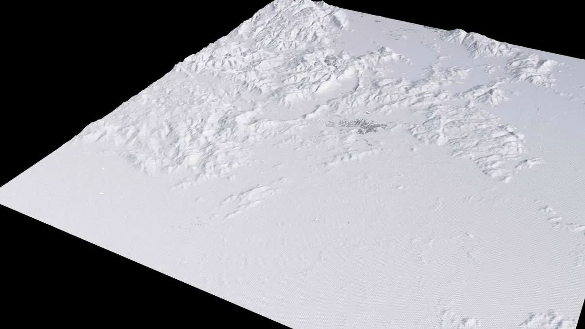Originally created in Houdini 19. Final images rendered in Houdini. Data source is ASTER GDEM V3, ASTER WATER V1, Open Streep Maps 2022, Copernicus Sentinel 2016.