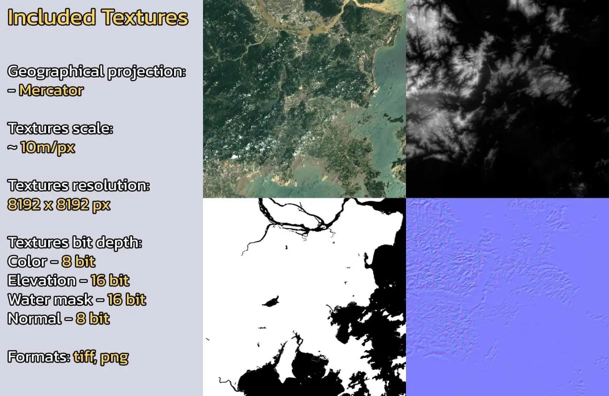 - Textures resolution: ~10m/px