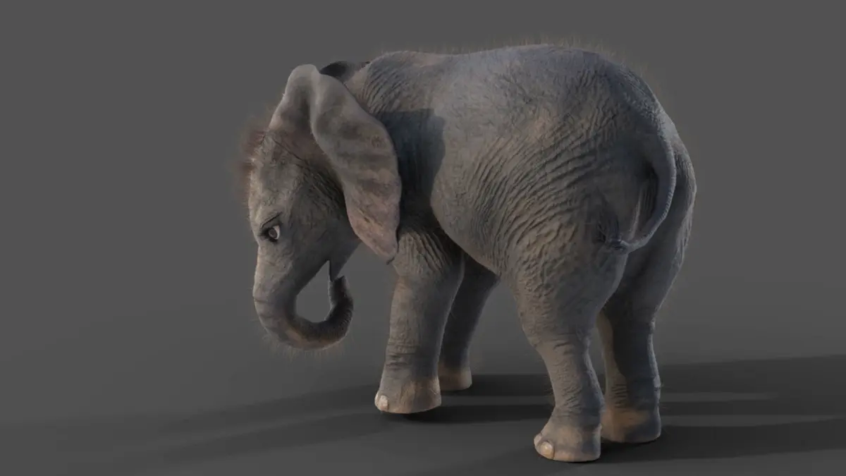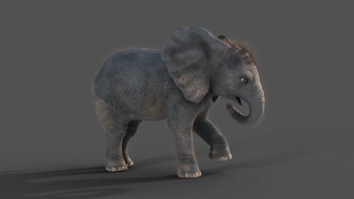 Fur Baby Elephant Rigged in Blender