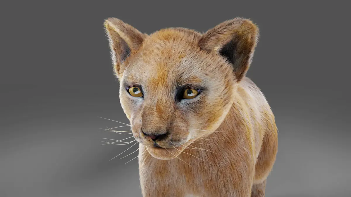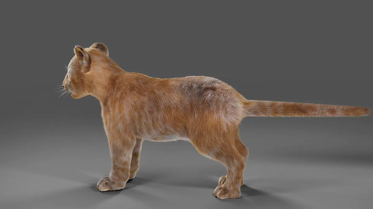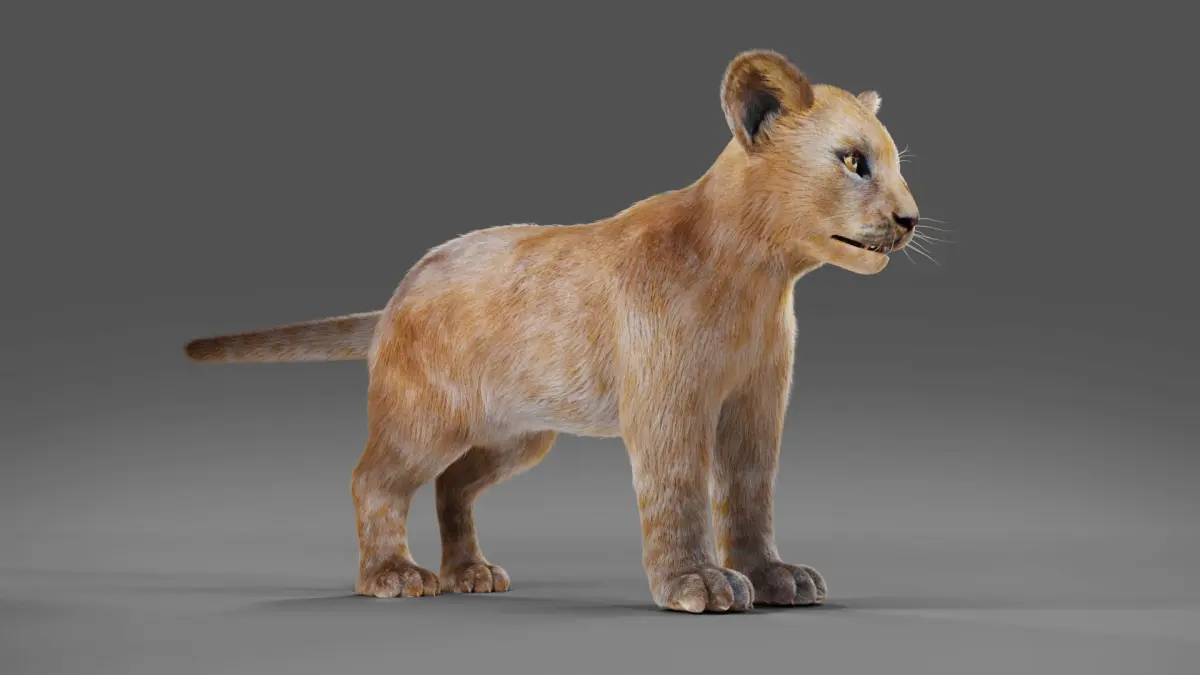 High quality realistic Lion Cub model with fur.