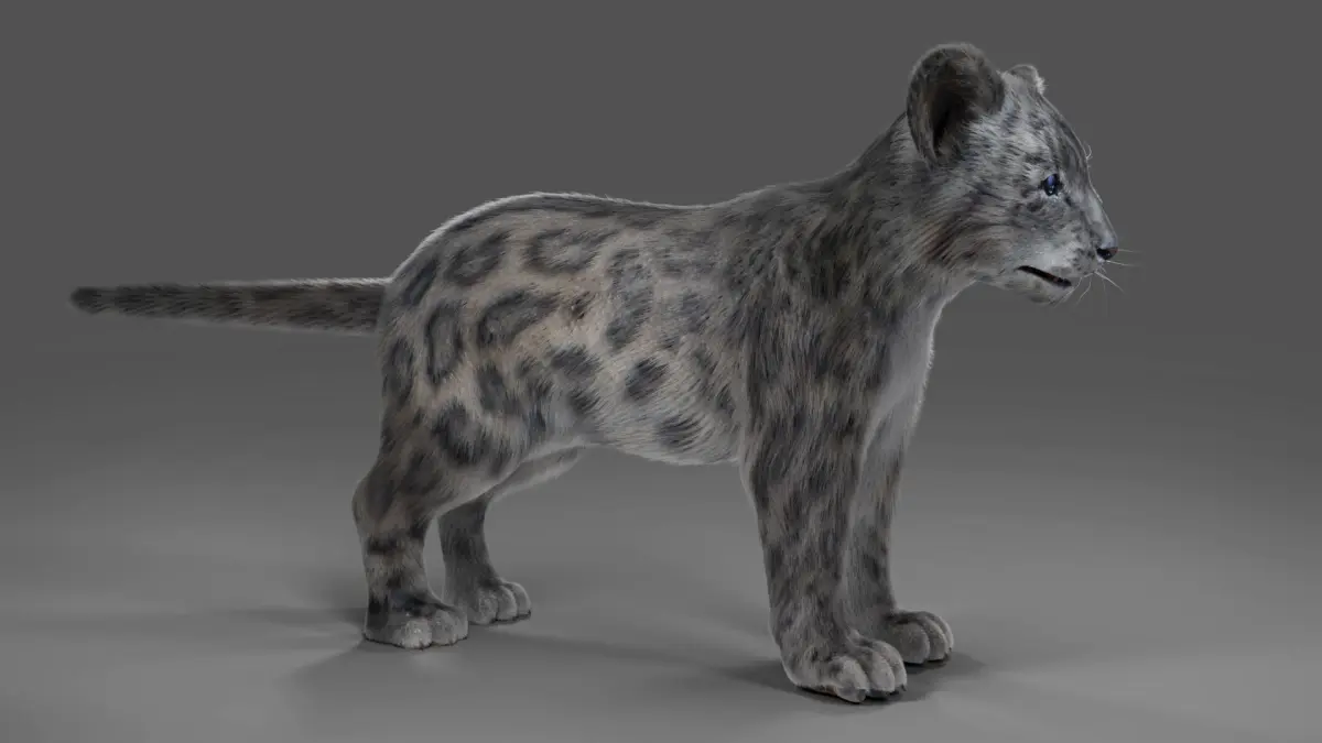 High quality realistic Snow Leopard baby model with fur.