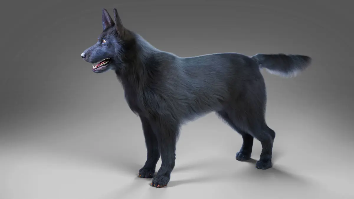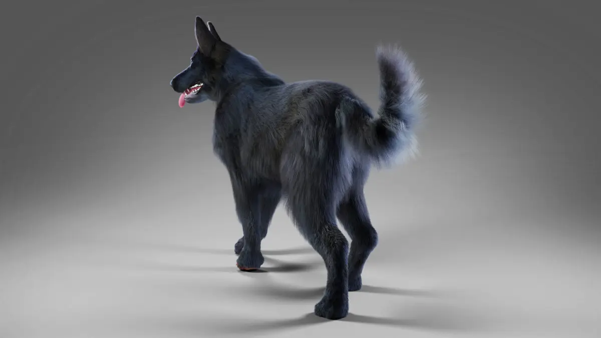 Fur Black Dog Rigged, including 4K map, rigging and fur, made with Blender in the real-world scale and rendered by Cycles renderer.
