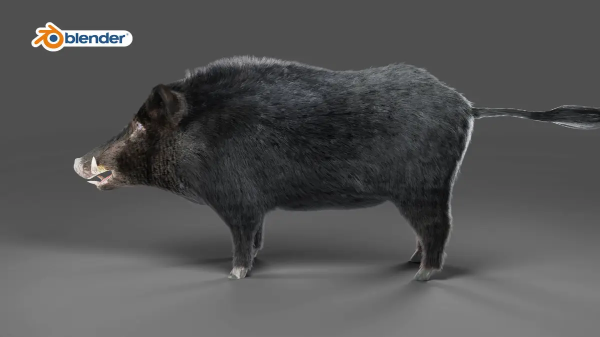 Fur Wild Boar NO Rigged in Blender