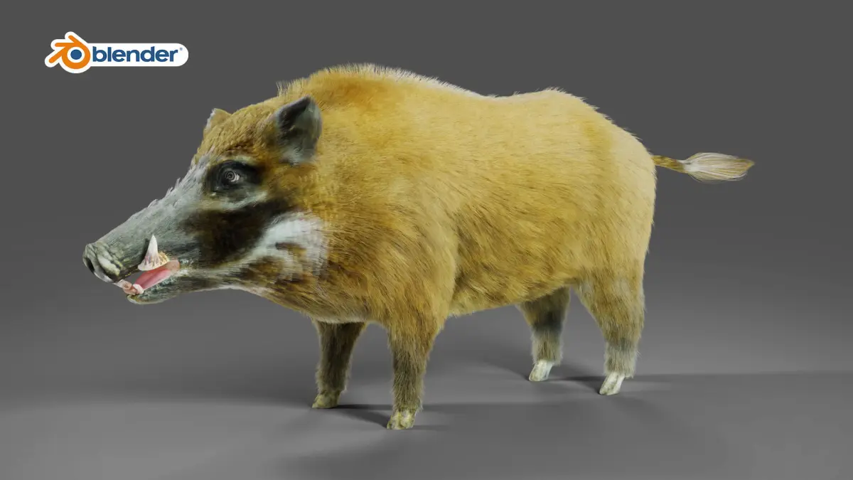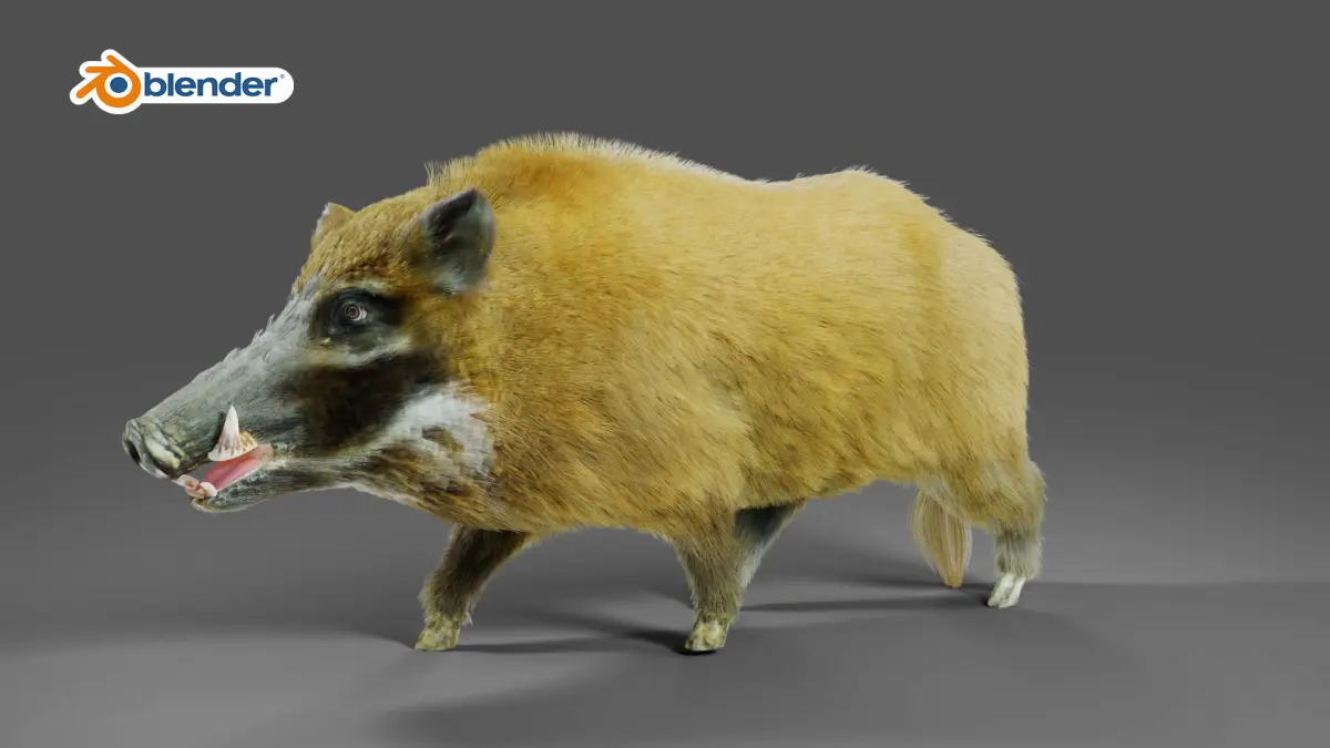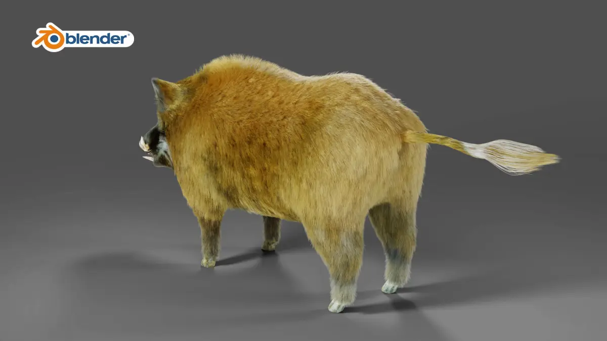 Home Catalog Fur Black Wild Boar Rigged V05 in Blender Low-poly 3D model
