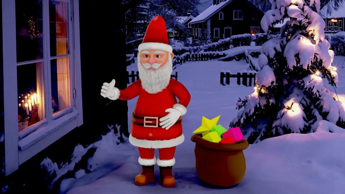 Fur Cartoon Santa Claus with gifts Low-poly 3D model