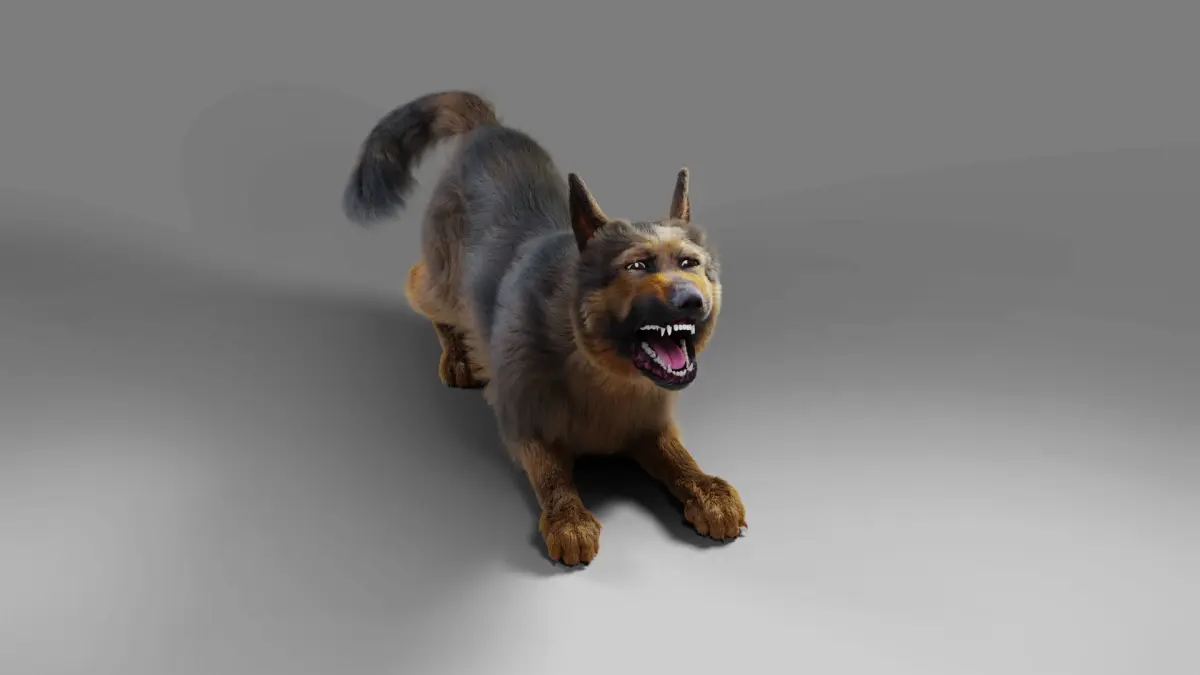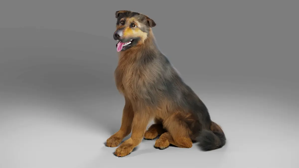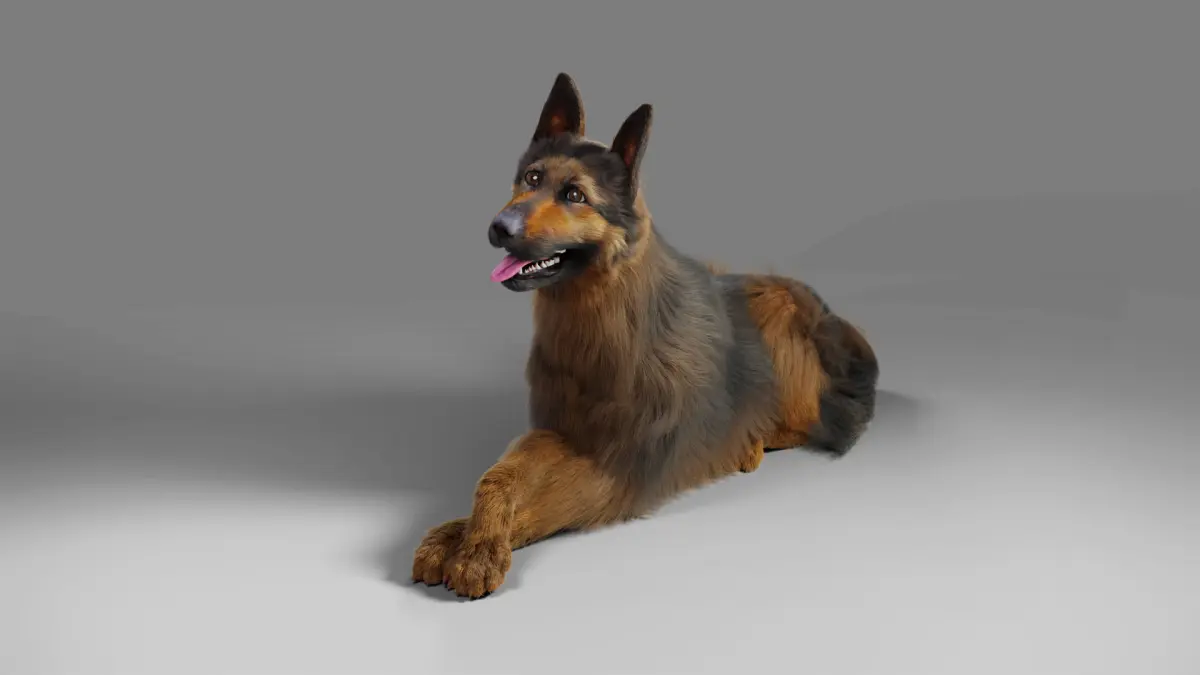 German Shepherd model, including 4K map,rigging and fur, made with Blenderin the real-world scale and rendered by Cycles renderer.