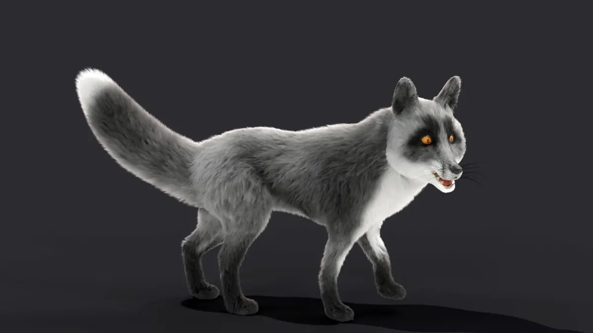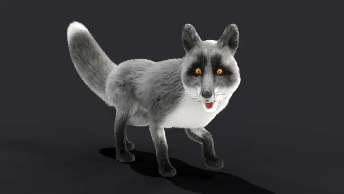 Fur Gray Fox Rigged Model Low-poly 3D model