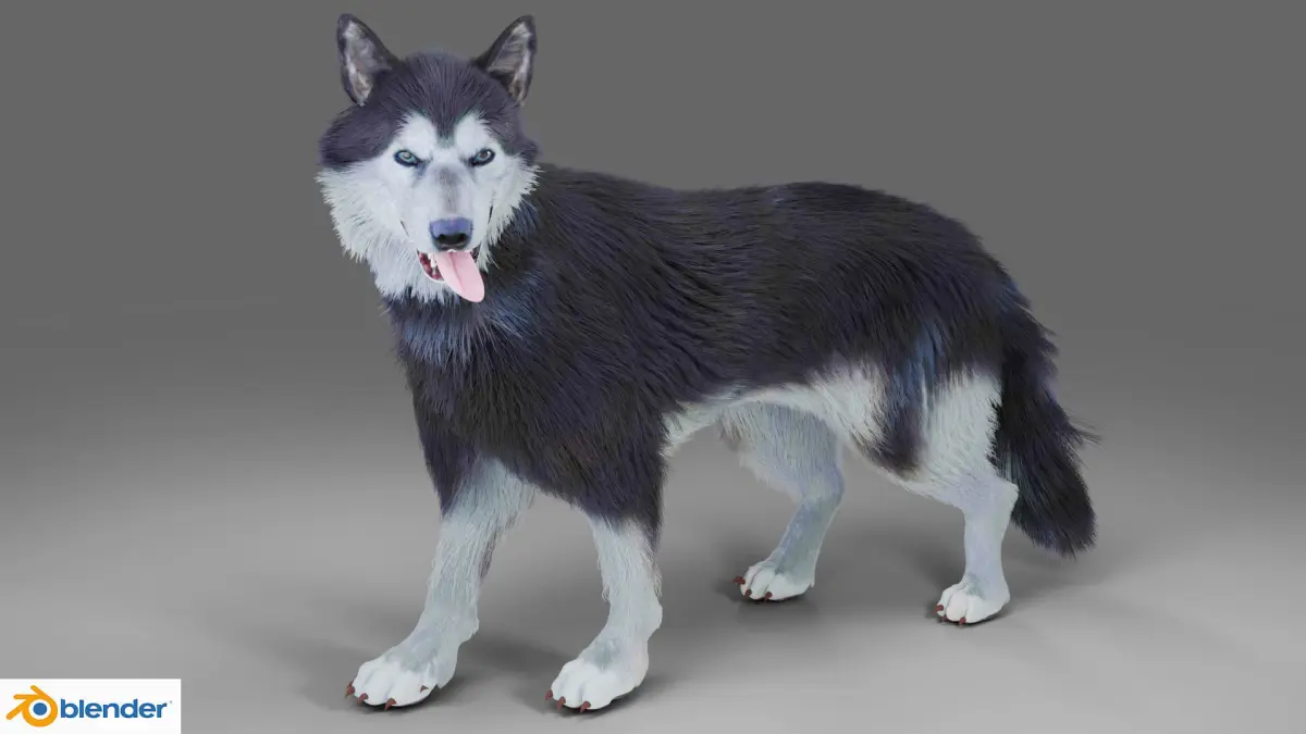 Fur Wolf Rigged in Blender