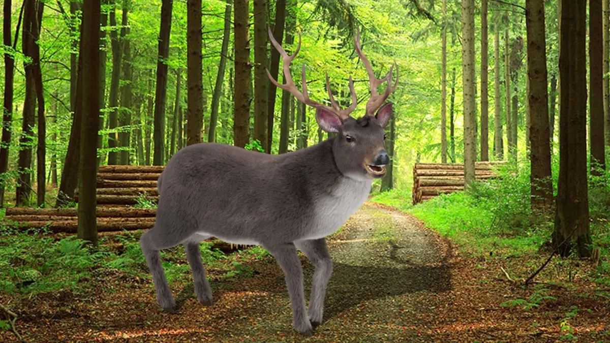 Fur Rigged Gray Deer Stag Low-poly 3D model