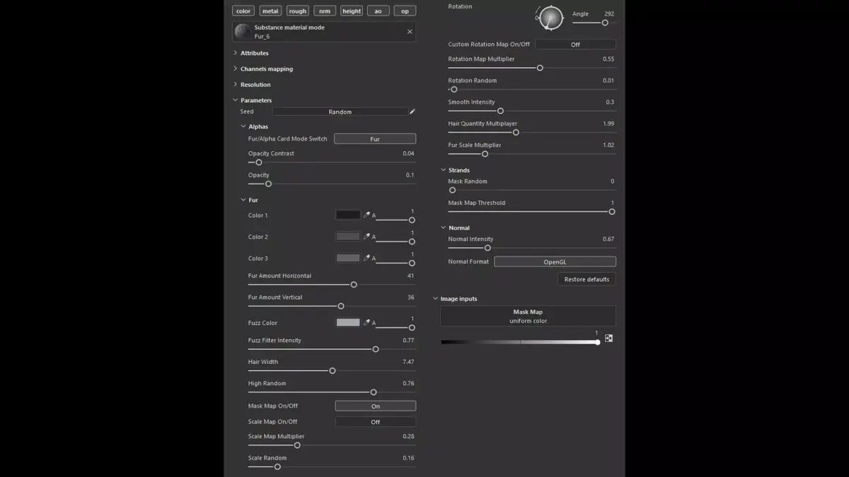 Fur PBR Material was created in Substance Designer 14.1.2.