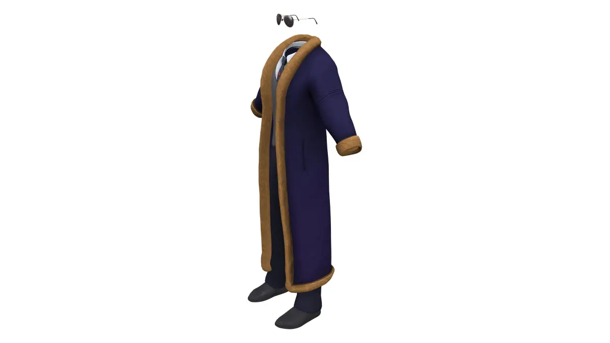 Fur Trim Long Coat Vest Shirt Trousers Shoes Glasses Outfit