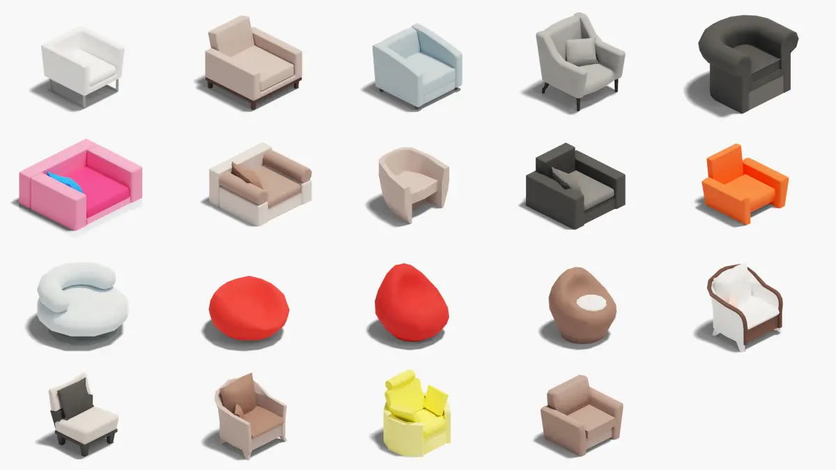 - Children’s Toys (40 models): trucks, houses, helicopters, cars, trains, building blocks, musical instruments (violins, guitars, synthesizers, drums), skateboards, cubes, balls, basketball hoops, boards, tennis, badminton, scooters, piggy banks, bowling sets, paint, Rubik’s cubes.