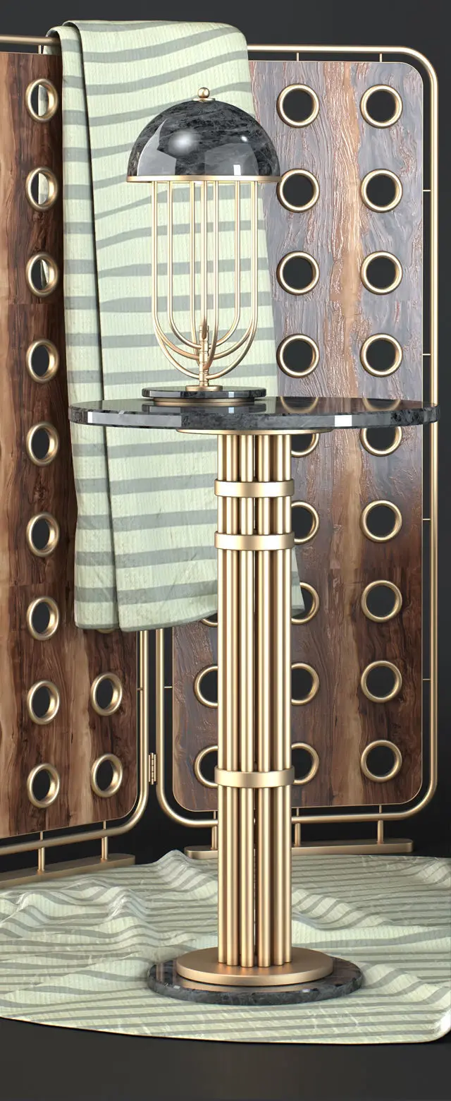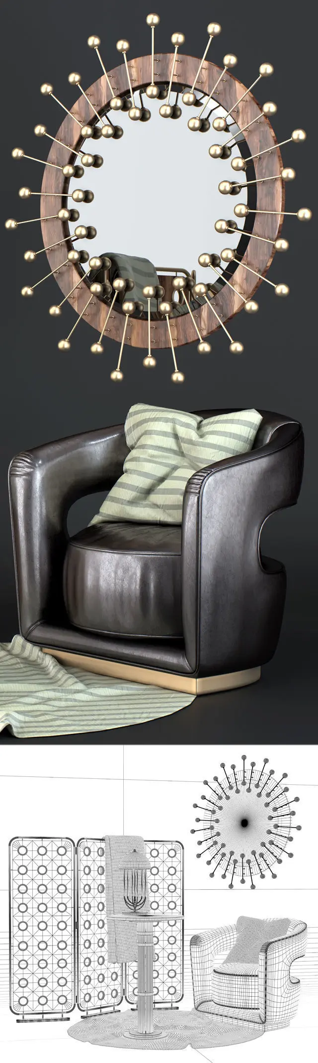 Quantum Mirror - MirrorJanis Bar Table - Bar TableEllen Armchair - Leather ArmchairMonocles Folding Screen - ScreenTurner table light - table lampAnderson Rug - Carpet
