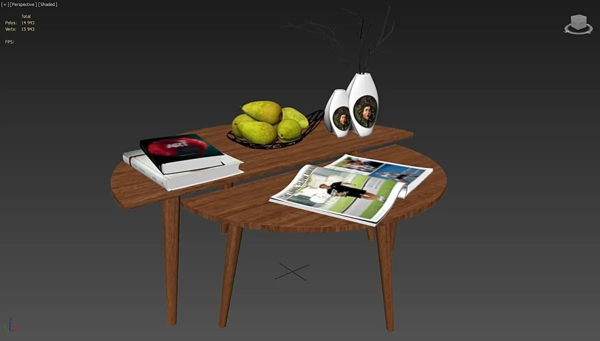 In scene decorative vases, fruit bowl, pears, books, journal, decorative twigsModel stored in 3DMax 2013 V-RayThe archive contains: FBX - V-Ray
