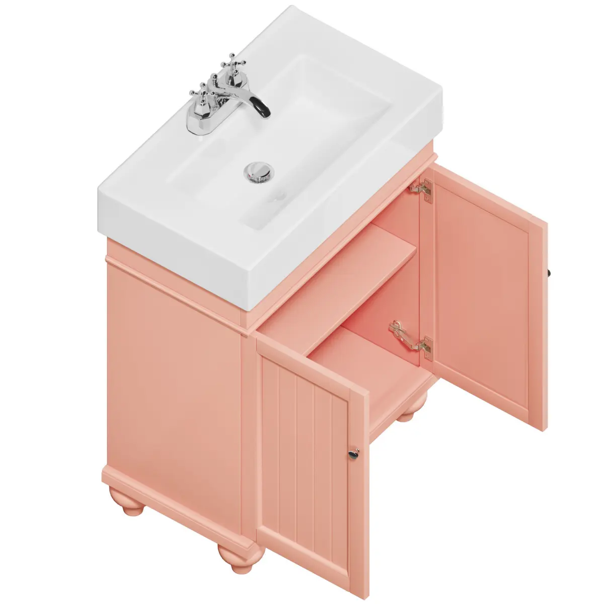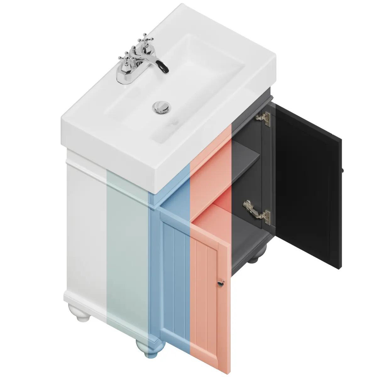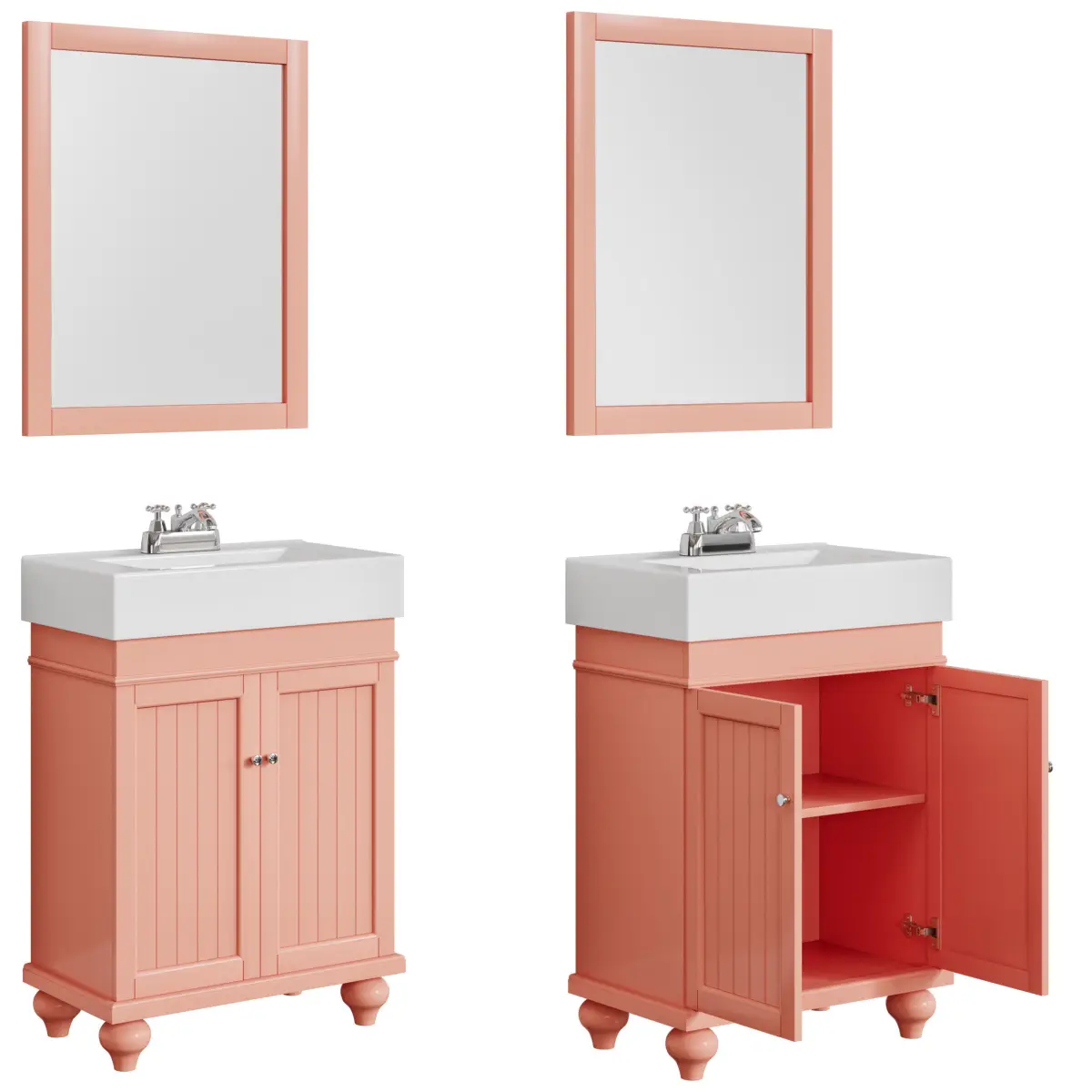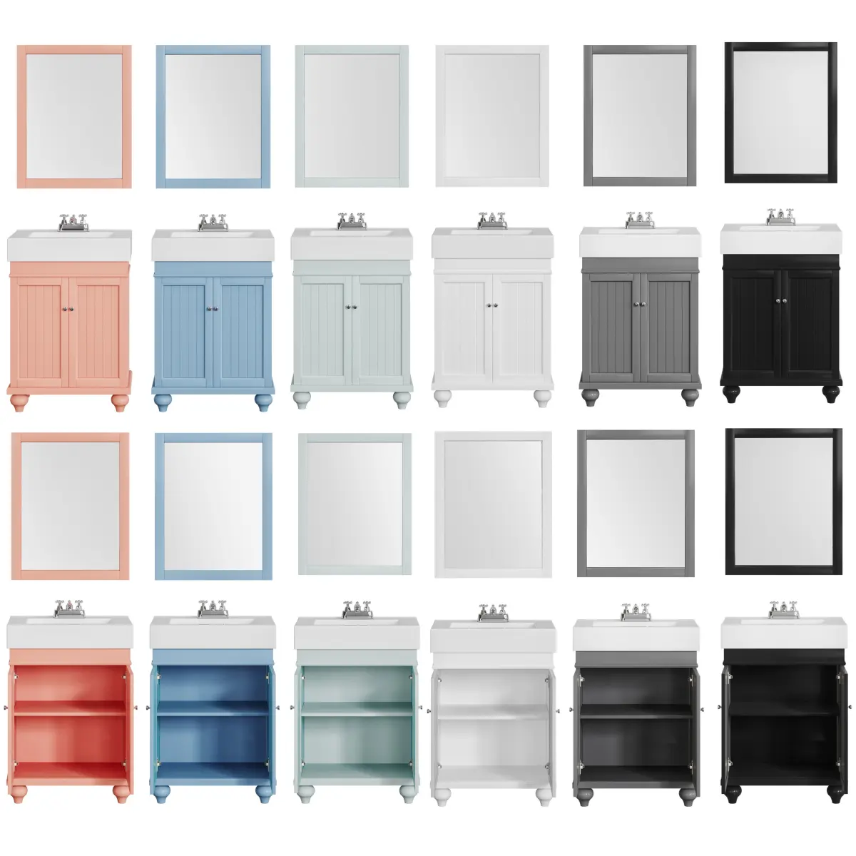 Furniture Set 24 Lander Vanity by Signature HardwareCabinet: 60Overall Dimensions (WxHxD): 612x876x361 mmMaterial: Painted Wood (available in white, black, blue, sage green, dark gray, coral)The storage doors on the model open.