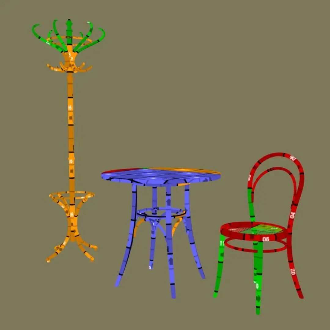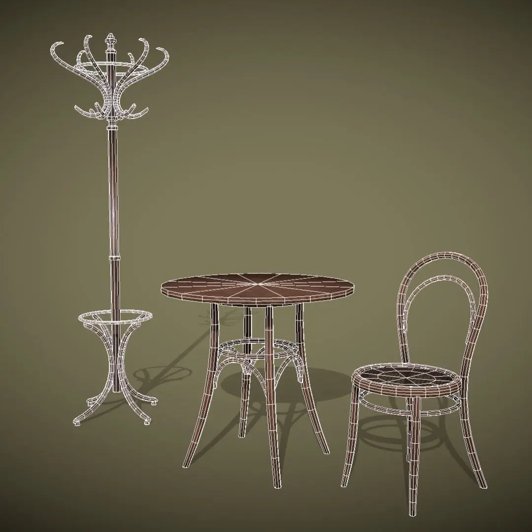 Chair - Michael Thonet Nr.14 (from 1860).Table - Gebrüder Thonet GmbH (2nd half of the 19th century).Coat stand - Michael Thonet Nr.15 (middle of the 19th century).