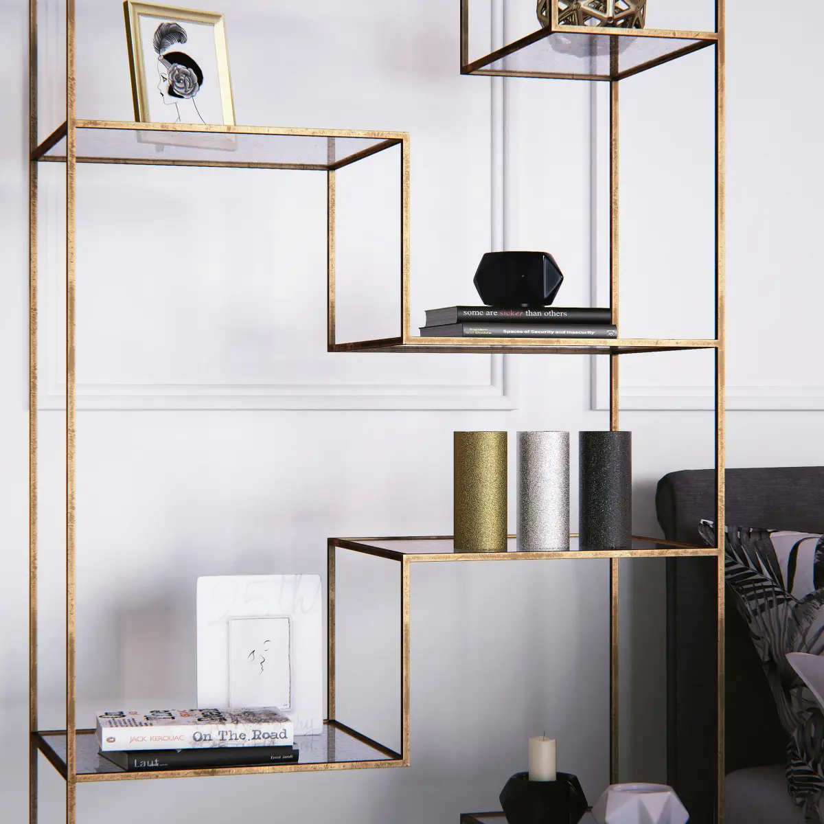 Overall: 84'' H x 40'' W x 18'' DOverall Product Weight: 121lb.The Mansfield Étagère is like a piece of fine jewelry – although not absolutely essential, it elevates absolutely everything. The distressed mirror shelves and gold leafed frame perfectly display treasured collections of books, objects, décor and more. Place two side by side for a truly striking statement.