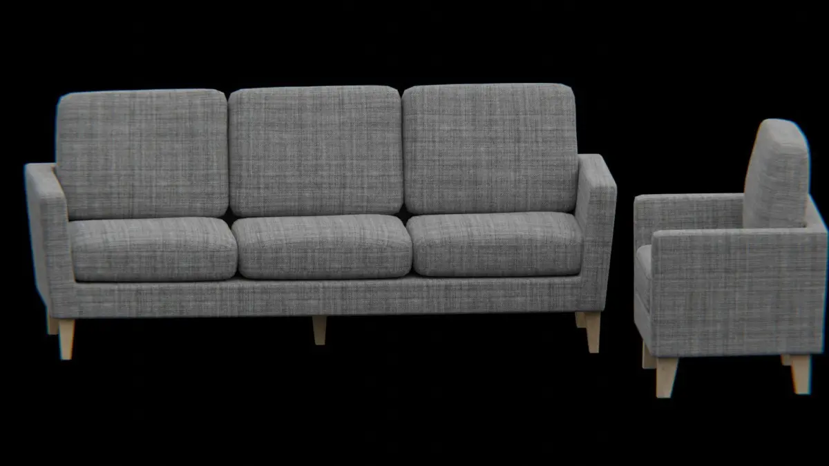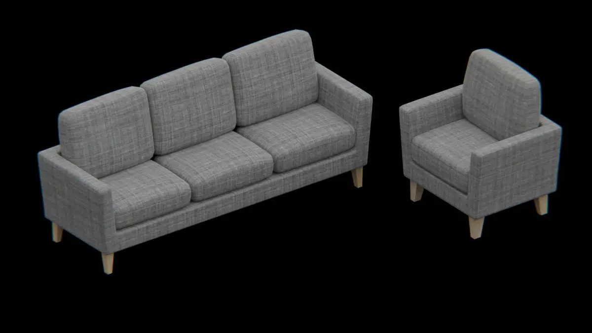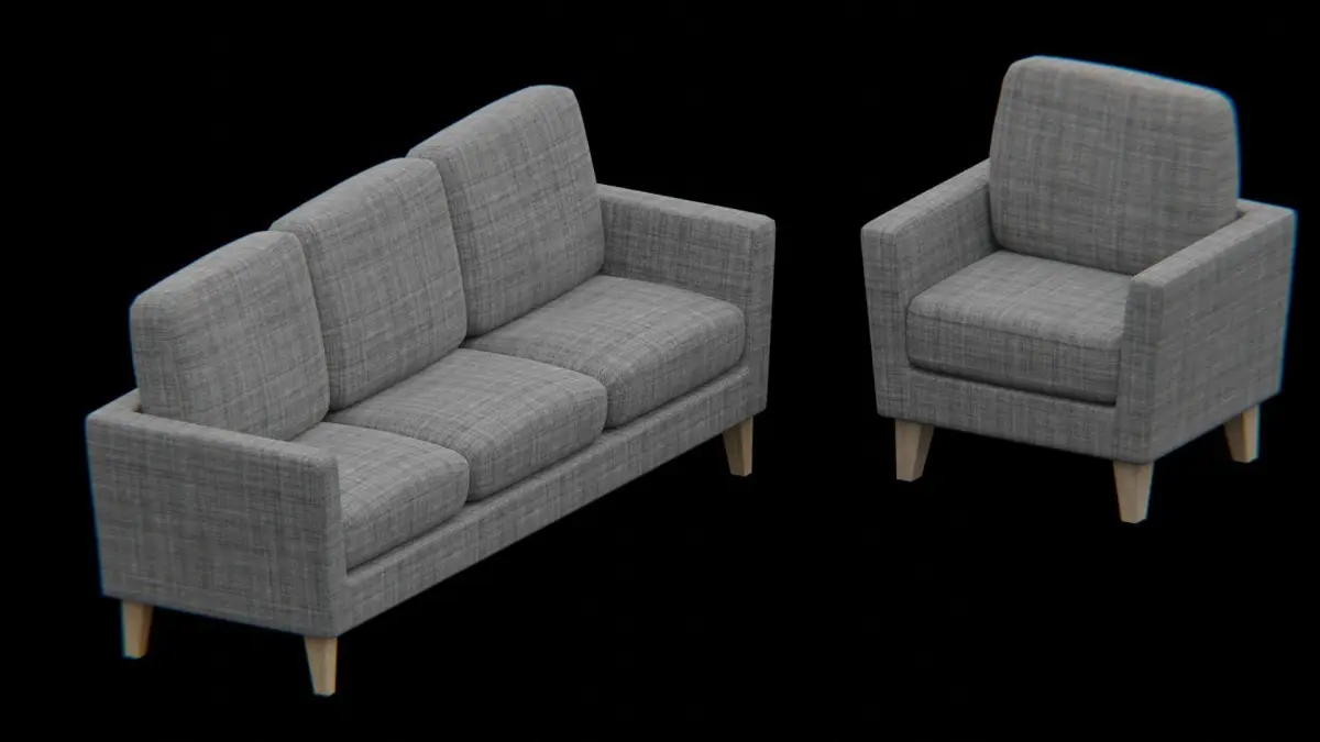 Furniture-set sofa and chair Low-poly 3D model