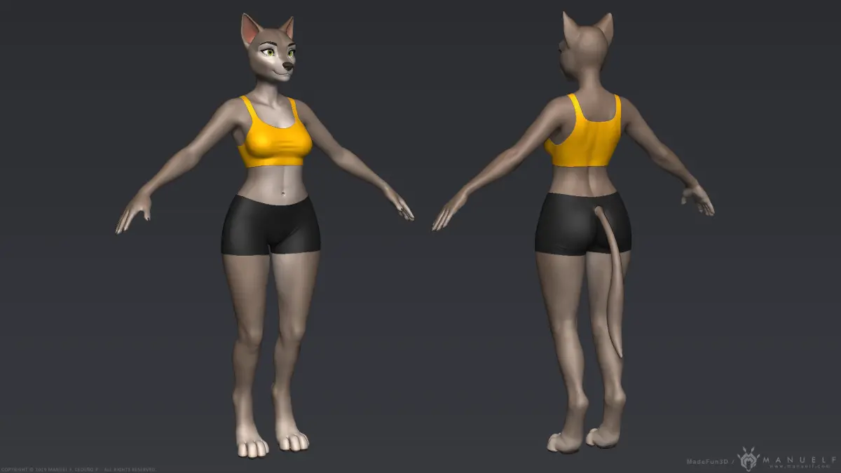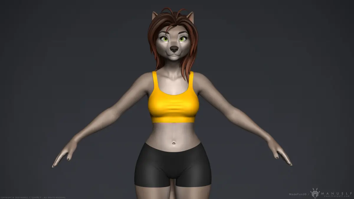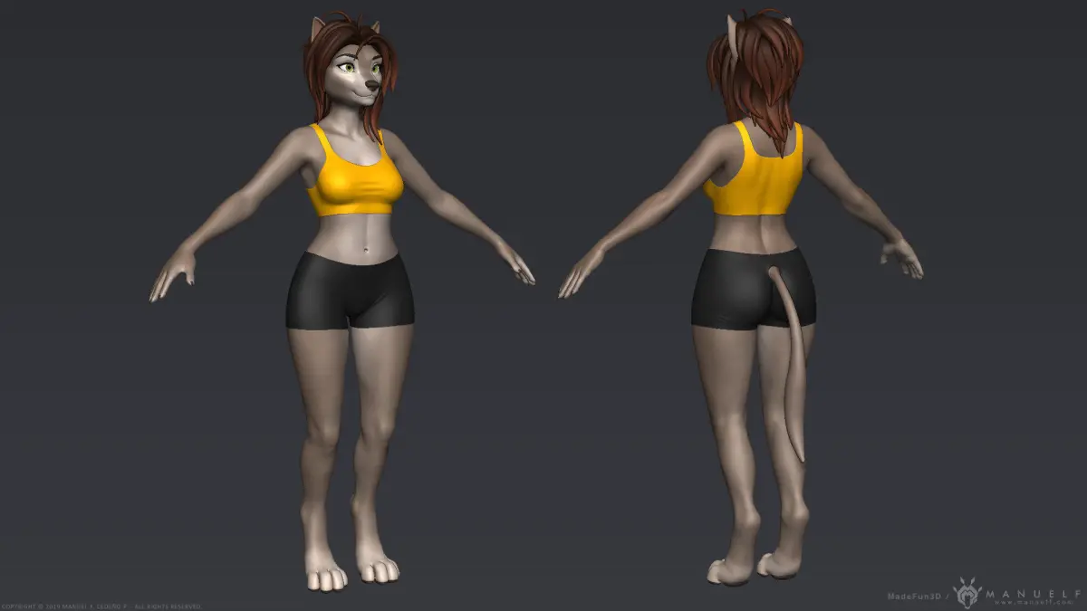 High quality model of an anthropomorphic dog or wolf girl.Great model for furry enthusiasts!