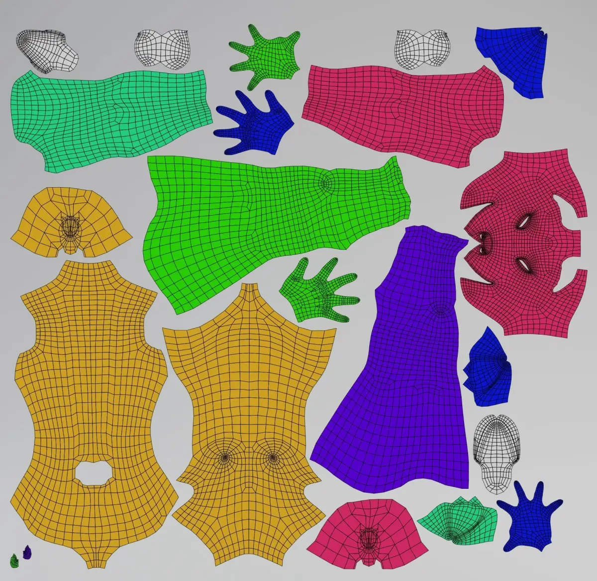 Unwrapped UV maps 3- levels of detailEyes and Mouth included