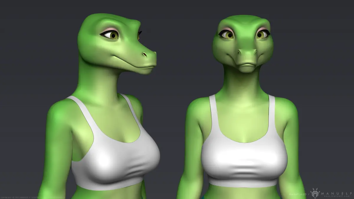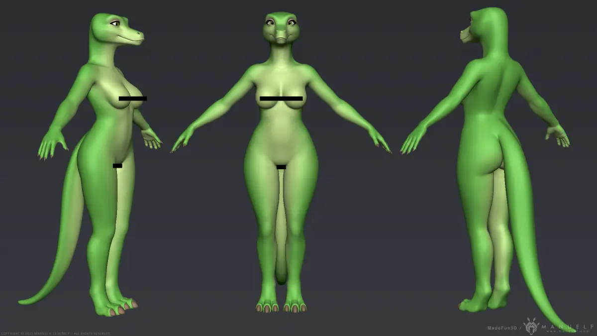 High quality model of an anthropomorphic reptile or lizard girl.Great model for furry/anthro enthusiasts!
