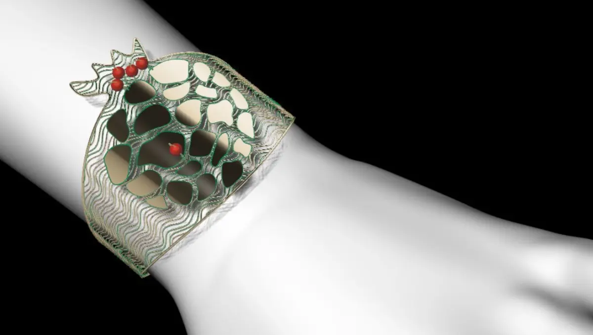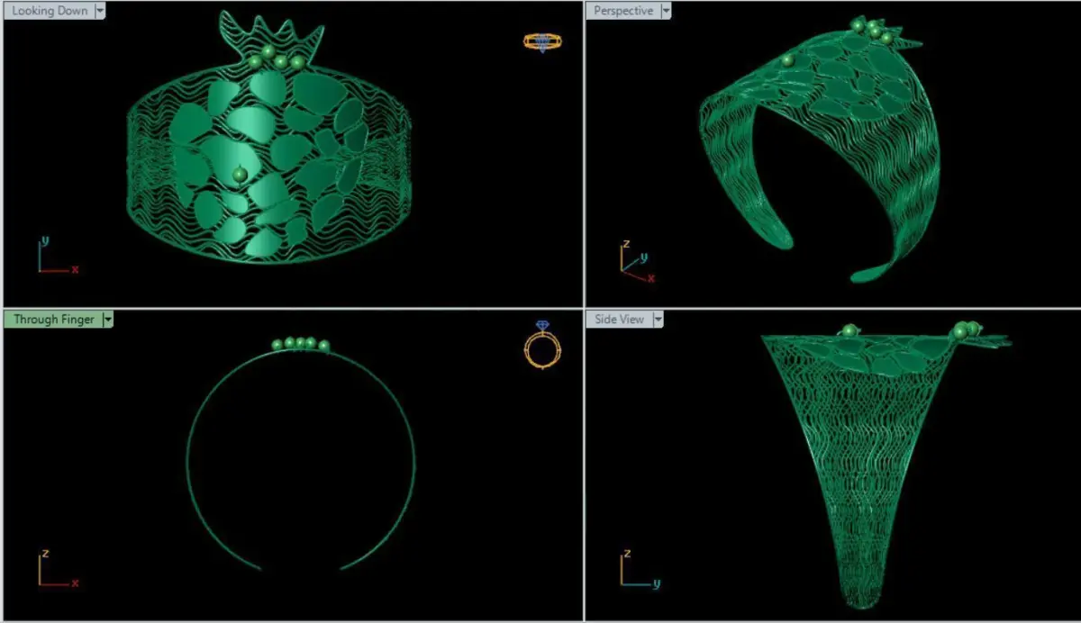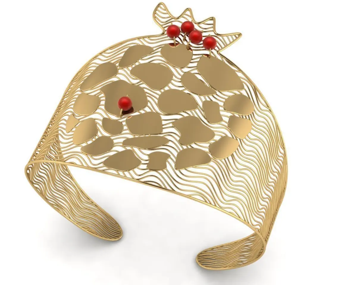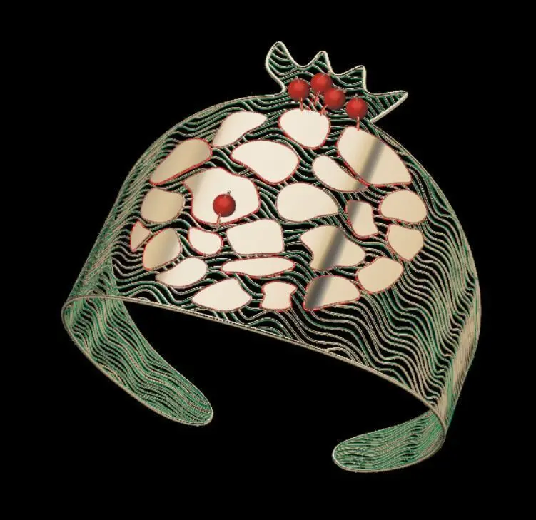 Pomegranate design bangle size 180 mm are tested with Material Magic software and ready for printing. This bangle is technically of the highest quality and you can easily print them and enjoy the work done. The thickness of the wires and straps is 0.3 mm and the diameter of the balls is 2 mm.If you need other thicknesses or different dimensions and sizes, please let me know as soon as possible. The dimensions, size and weight of gold are clear in the photos. You can order any design like this or very complex designs, any changes are made free of charge. Our goal is to provide high quality models and useful plugins to save you time. You can safely complete your purchase and enjoy your jewelry. The file of this bracelet is prepared in three formats: 3DM, OBJ, and STL