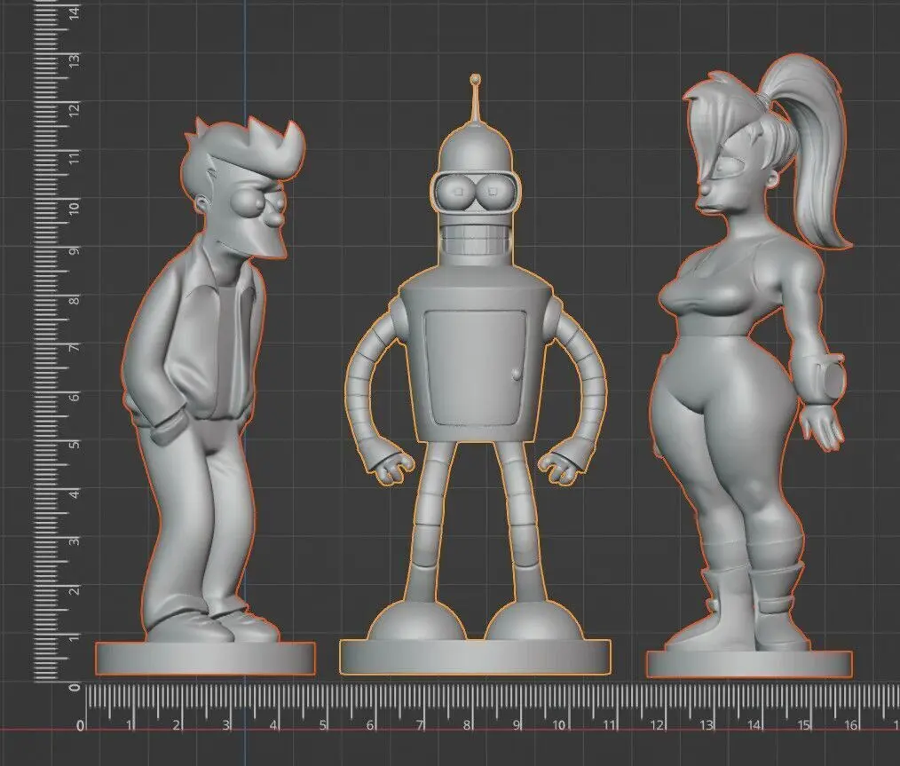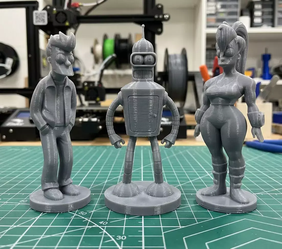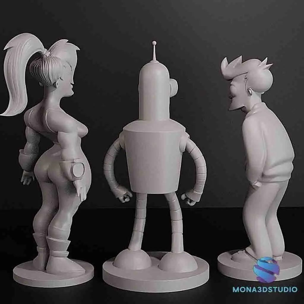 This exclusive bundle includes 3 highly detailed STL models of the most iconic Futurama characters: Fry – the delivery boy out of time Bender – the legendary bending robot Leela – the badass one-eyed captain