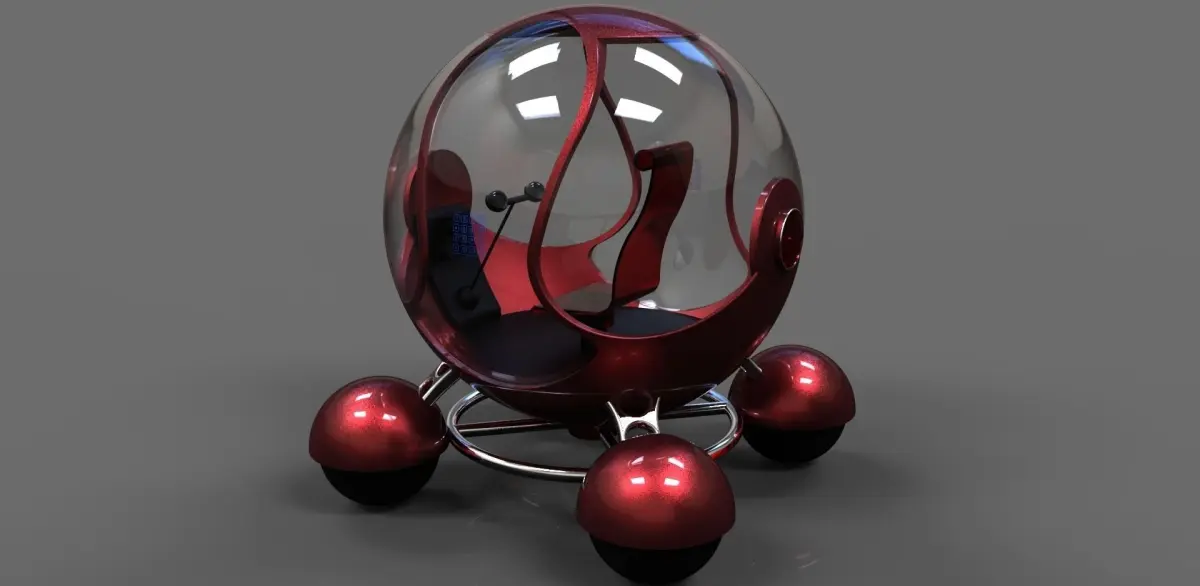 here its my first crack at future small car,idea came from sitting in my cubicle and office chair, dimensions came from a cubicle just made a sphere from that and started to cut out, doors have a digital keypad lock, the chair rotates 360 degrees. the steering wheel are to sphere that you roll kinds of like a ball in a mouse and the spherical tires move as you roll back and forth and side to side, with a obvious lock for safety with the rolling spheresstill kind of working on it, i know it will not work but hey its a dreamoh also credit to IMEthank you i used you robot to put inside my future car