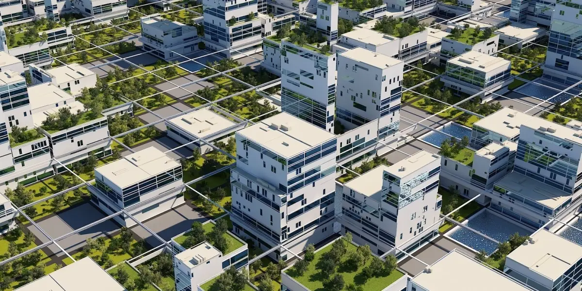 Detailed Futuristic city.Rendered with V-Ray Next.