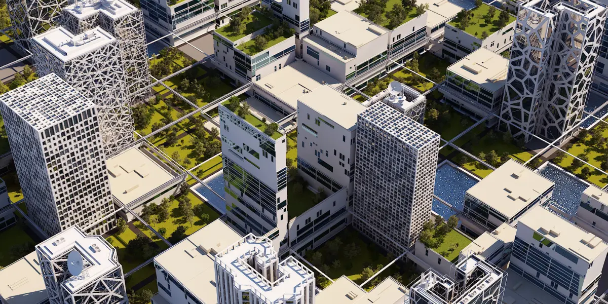 Detailed Futuristic city. Rendered with V-Ray Next.