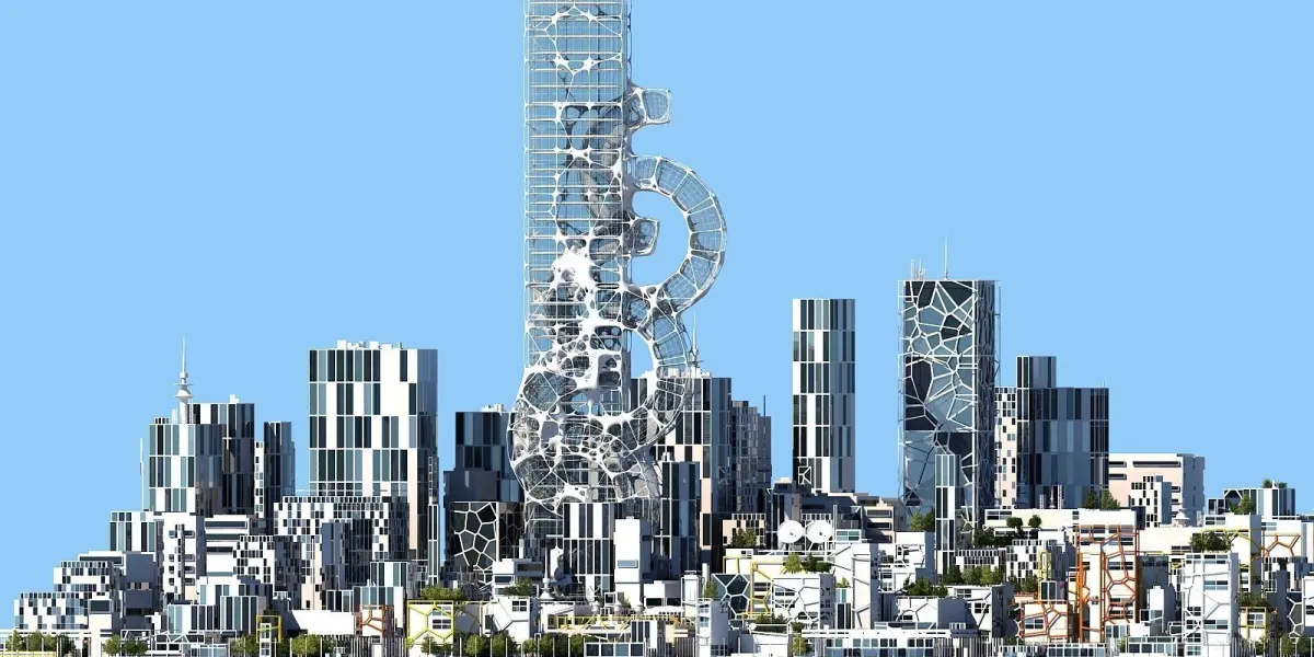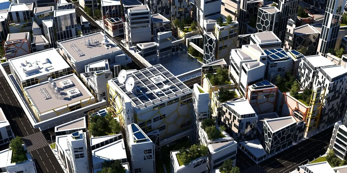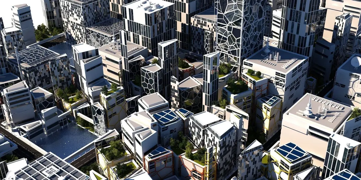 Extremely detailed 3D model of a stylized cityscape of the future.