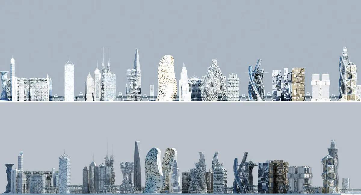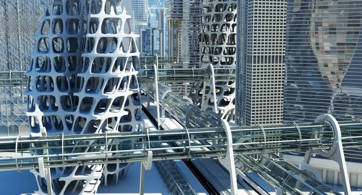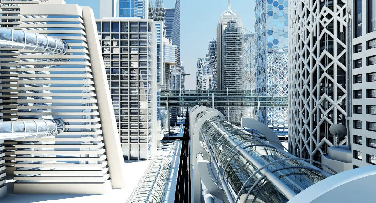 Extremely detailed 3D model of a realistic cityscape of the future.