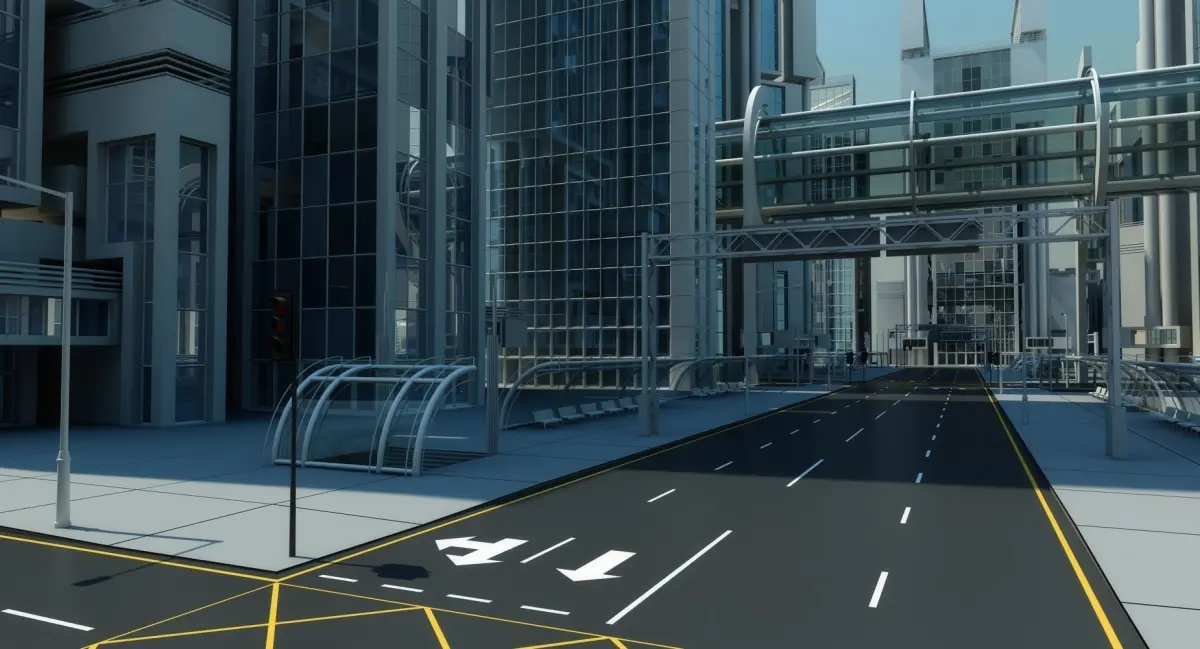 Extremely detailed 3D model of a realistic cityscape of the future.