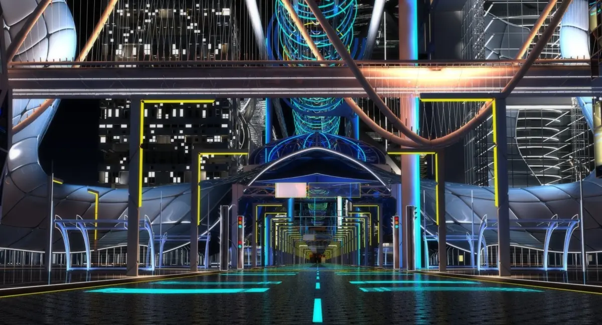 This scene contains 40 highly detailed futuristic Architectural structures and futuristic transport networks.