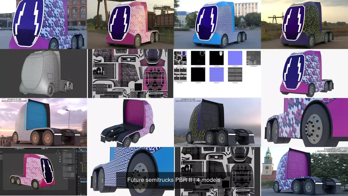- These are 3D models of futuristic semi-trucks.