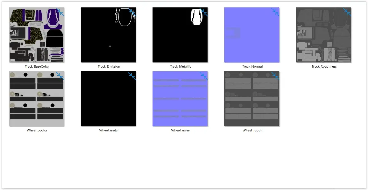 - Each model contains 2 materials (truck & wheel).
