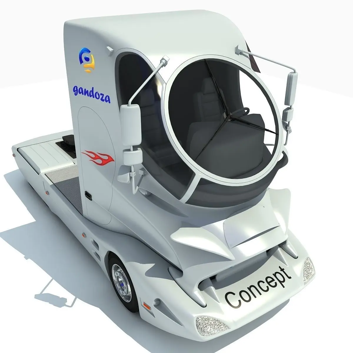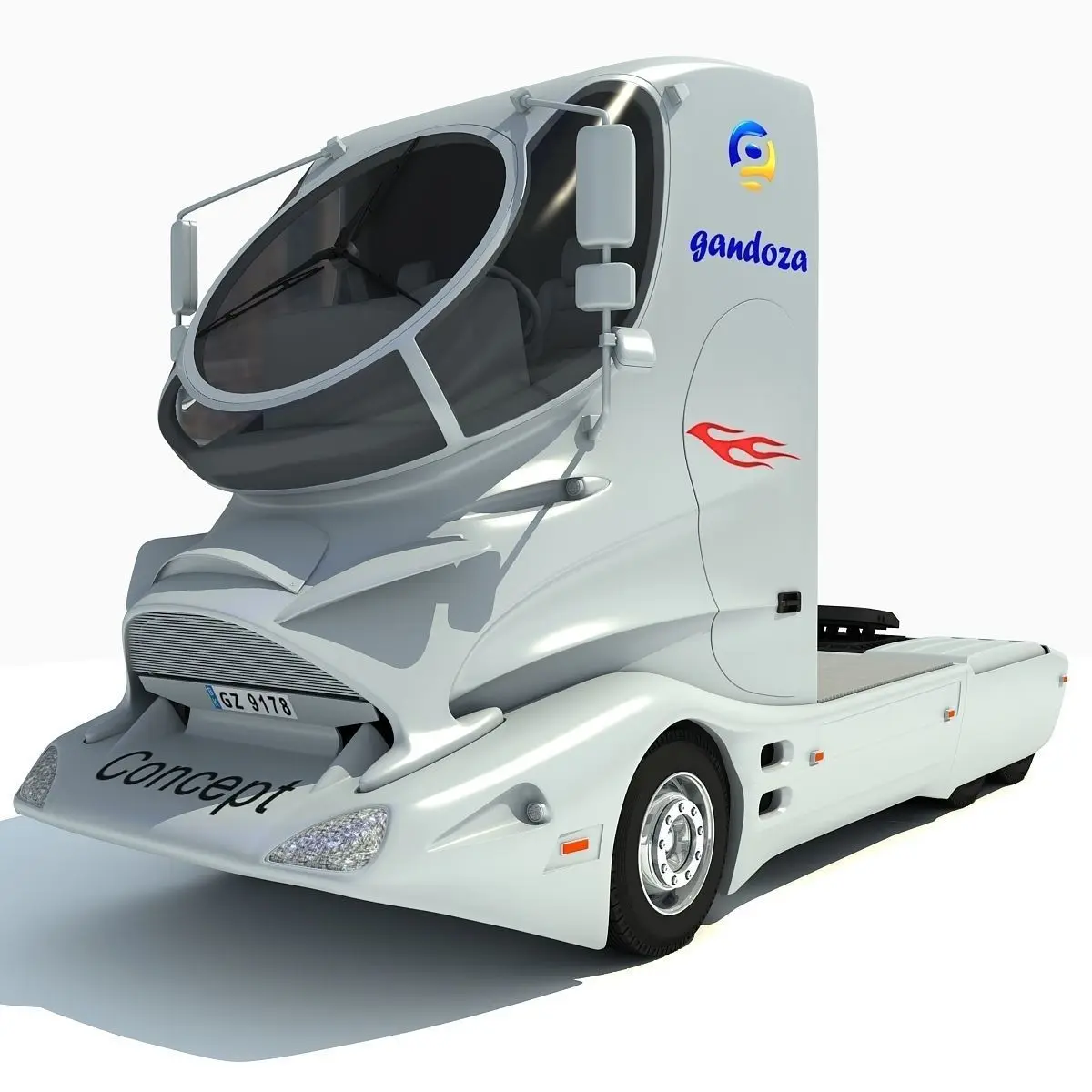 Realistic 3d model of concept futuristic truck, with semi-detailed interior.All (JPEG) textures and materials are included and mapped in every format. All colors can be easily modified. Final images rendered with V-Ray. No post-production or Photoshop was used. (4096 x 4096) PSD file included, this allows to edit or add texts and logos.HDRI reflection map included.