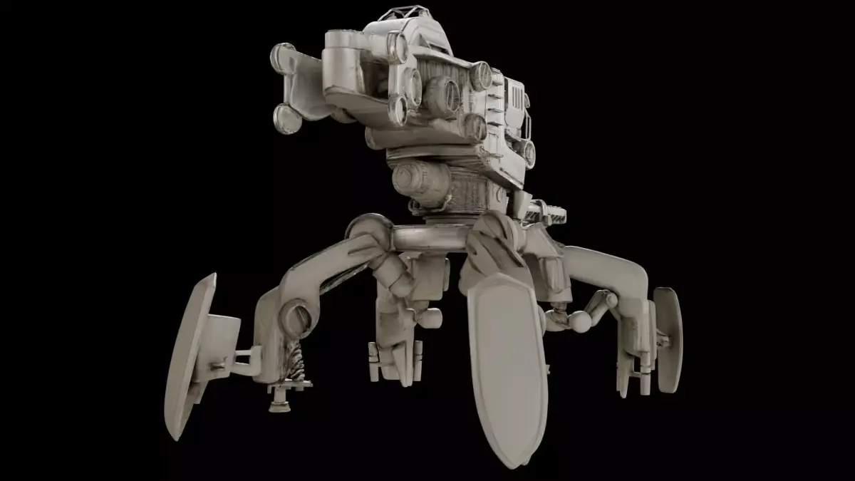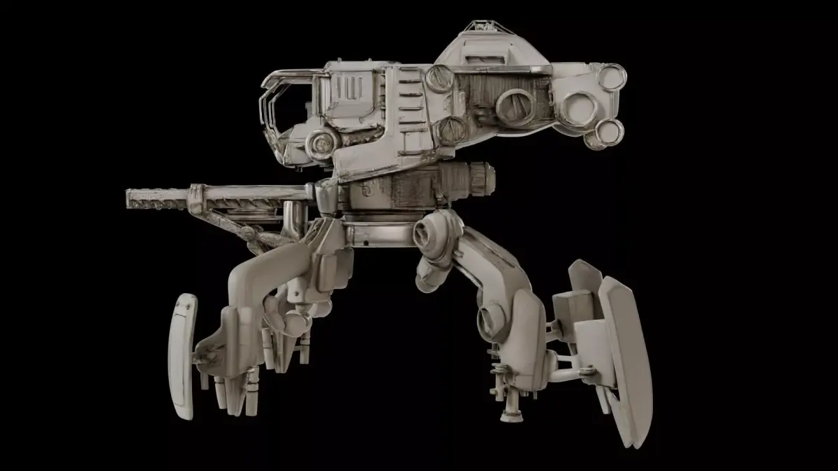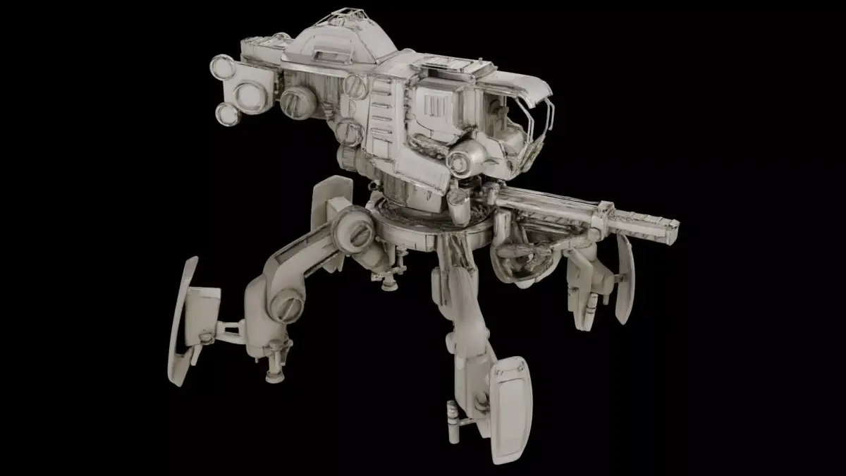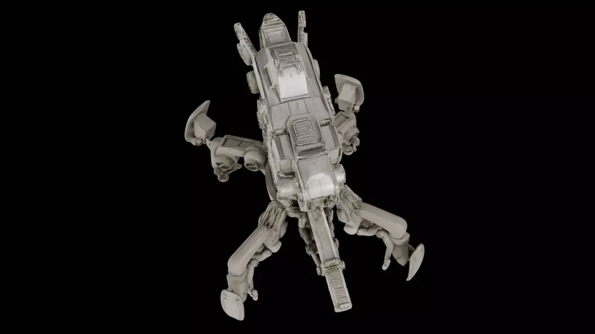 This highly detailed 3D model showcases a futuristic quadruped combat robot designed for sci-fi environments. Featuring four articulated legs, a central cockpit-like body, and a prominent front-mounted weapon system, this model is ideal for concept art, animation, and game development. The rear includes thruster-like cylindrical components, enhancing its mobility and suggesting aerospace or military applications.Crafted with a monochromatic metallic texture, the model emphasizes industrial realism and mechanical complexity. Perfect for use in cinematic visualizations, VR/AR experiences, or robotics research simulations.Features: Fully rigged quadruped structure, Statis model only, No Articulate, No Rigged, No Animation, High-poly mesh not clean topology, Compatible with Blender, FBX, OBJ formatsUse Cases: Sci-fi games and cinematics, Concept art and promotional renders, Robotics and AI simulation environments, Educational and research visualization