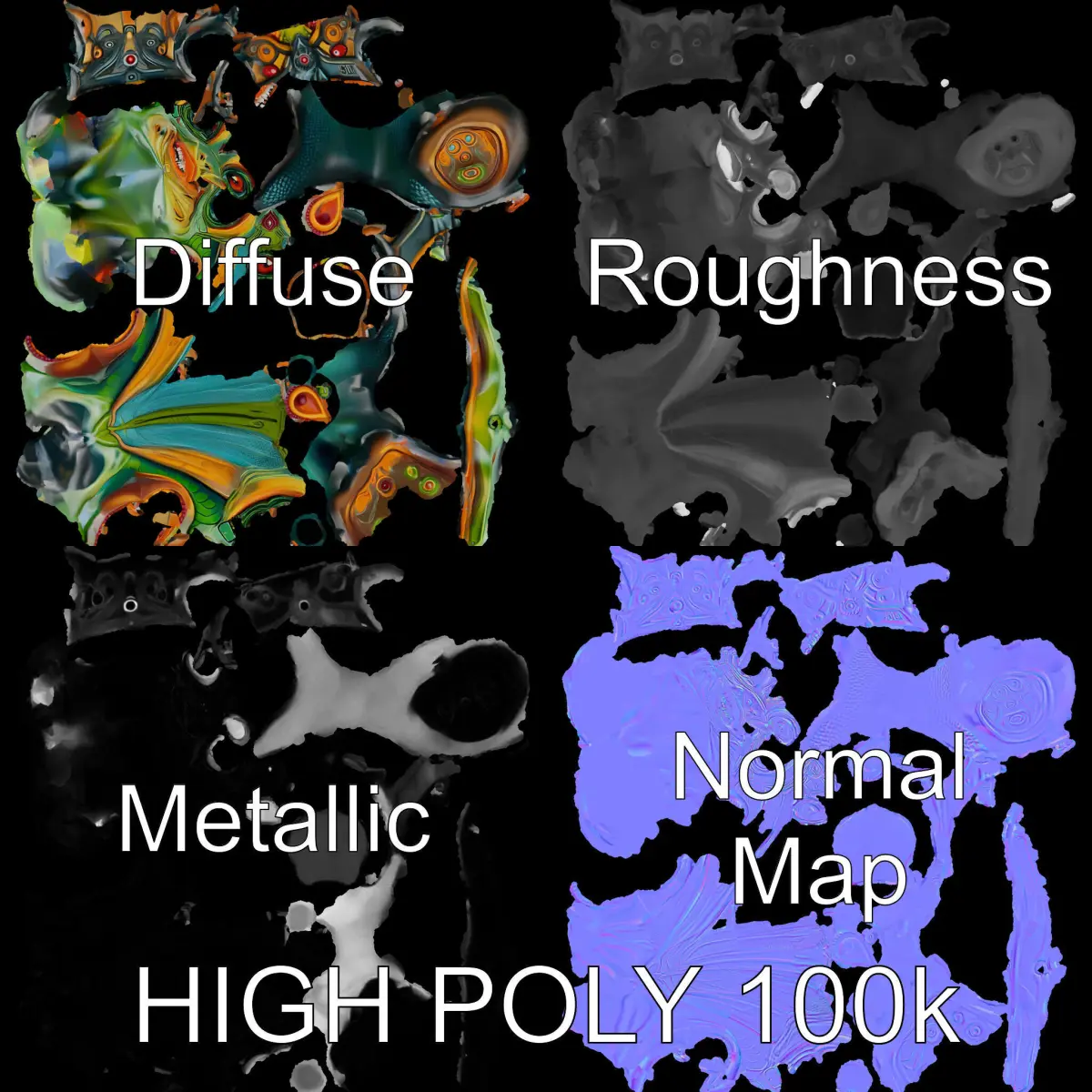This highly detailed futuristic alien creature model pack features 3 levels of detail, catering to a wide range of uses from mobile games to high-end production renderings. Its unique design makes it ideal for sci-fi environments, animation projects, and interactive presentations. Enhanced with PBR textures including Diffuse, NormalMap, and reflection/roughness/metallic, it suits modern rendering engines perfectly. All models are accurately unwrapped with no overlapping UV and include 4096x4096 texture resolutions. The first image is the reference used for creating the 3D model. It is important to carefully evaluate the quality of the model by examining the preview images that display the topology and polygonal mesh. These previews (WIRE and WEB 3D Preview) clearly demonstrate how accurately the model matches the original reference and how well the geometry has been executed. If you like this model, please give it a thumbs up and leave a comment!