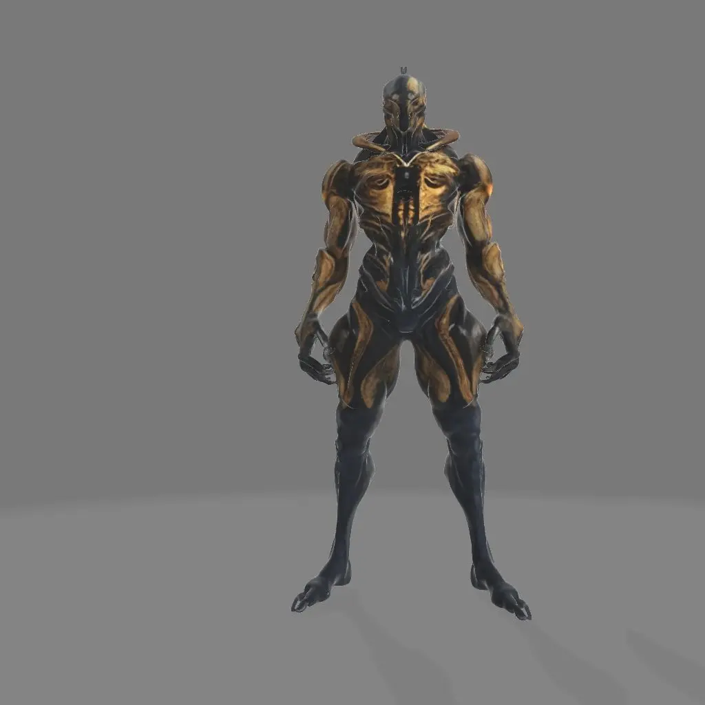 3D printed statue of a man wearing shining futuristic armor, designed with sleek, angular lines and reflective surfaces that suggest an alien origin. The armor is intricately detailed, with glowing accents and a smooth, metallic finish. The figure's posture is strong and imposing, with a face obscured by a sleek helmet, enhancing its otherworldly appearance. This unique and bold design captures the essence of advanced technology and alien aesthetics, making it a standout piece for sci-fi and futuristic art fans.
