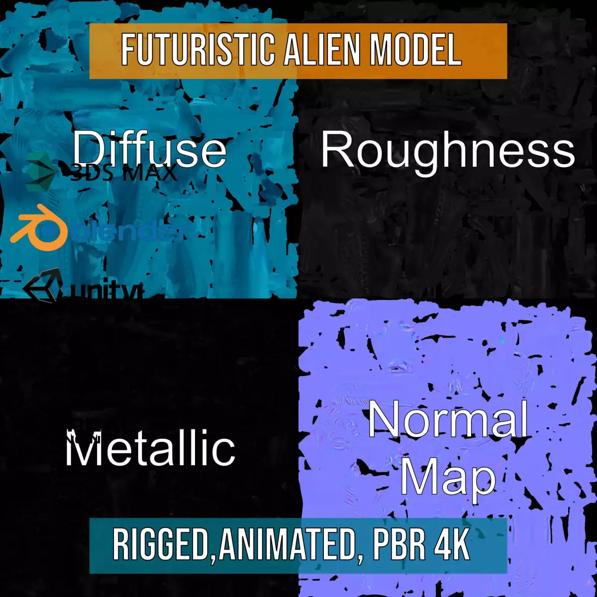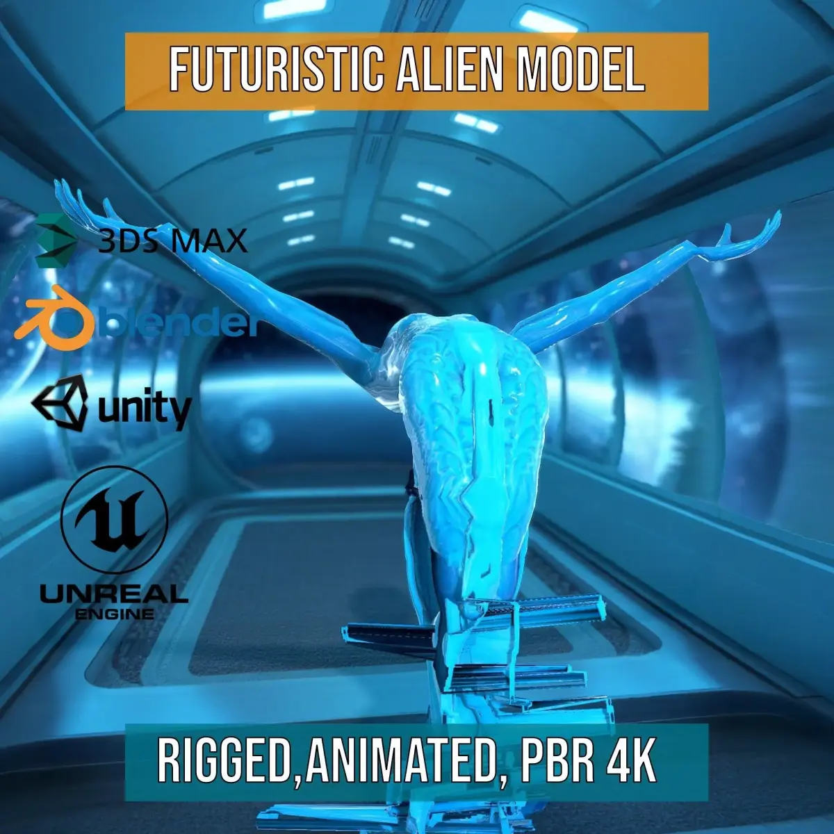 This highly detailed futuristic alien model is perfect for sci-fi scenes and animations. Each model has 3 levels of detail: low-poly (1000 triangles for mobile), middle-poly (10,000 triangles for environment), and high-poly (100,000 triangles), which allows for the use of this model in production rendering (such as 3ds Max, Maya, Cinema 4D, Blender, V-Ray/Corona/Cycles and all others), game engines (Unity and Unreal compatible), and interactive presentations, providing a choice of detail based on the LOD System principle. This model is ideal for use in outer space adventures, futuristic storylines, and alien character design. The model's textures are PBR, Diffuse, NormalMap, and reflection/roughness/metallic, which are suitable for any modern rendering engine. All models are accurately unwrapped and have no overlapping UV. All textures are 4096*4096 in size. Please like and leave a comment if you enjoyed the model.