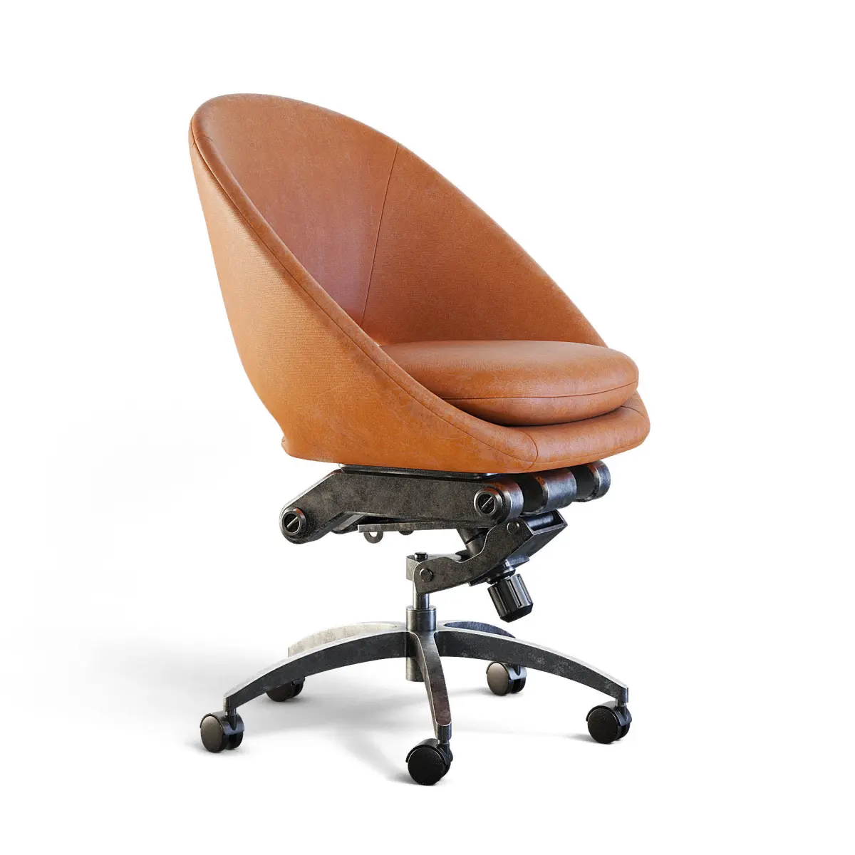 Futuristic slighty scratched apartment swivel chair with orange seat.