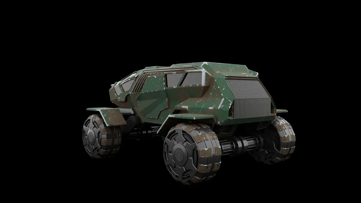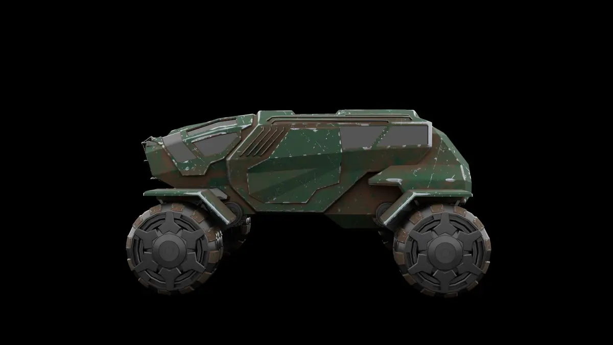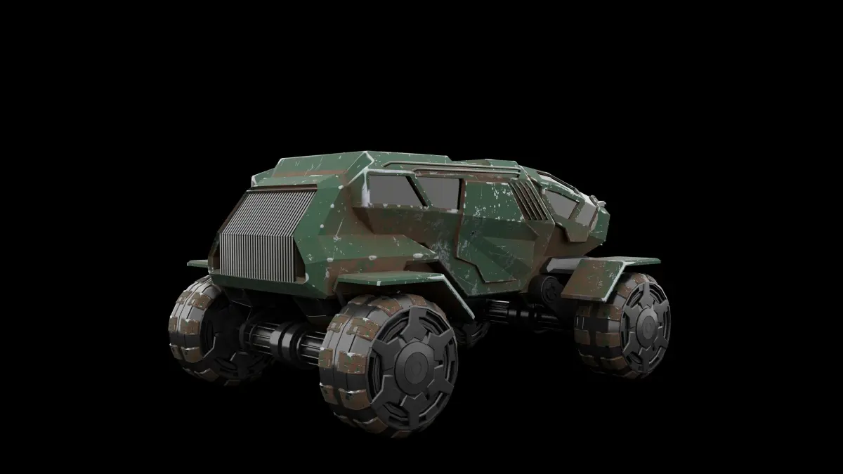 This is a high-quality 3D model of a futuristic armored vehicle, designed for sci-fi environments and off-road exploration. The model features clean topology, PBR textures, and game-ready optimization.