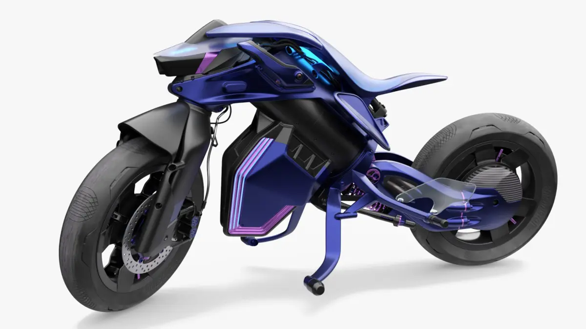 A futuristic balancing motorcycle concept features advanced self-balancing technology, enabling the bike to remain upright without external support. Designed for safety and ease of use, these motorcycles often incorporate gyroscopes, AI systems, and electric powertrains. They promise enhanced stability for riders, advanced controls, and a glimpse into the evolution of personal transportation.