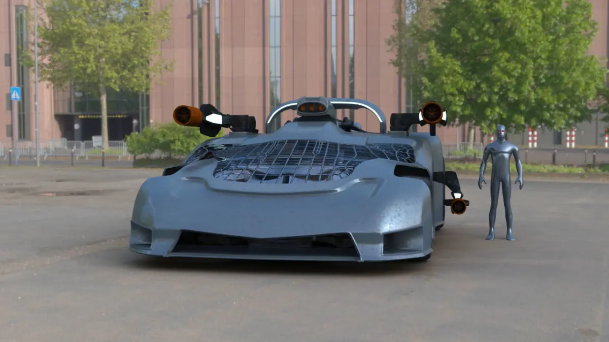 the model also has an interior for a crew of three, one driver in the center, and two near the doors are responsible for controlling the guns