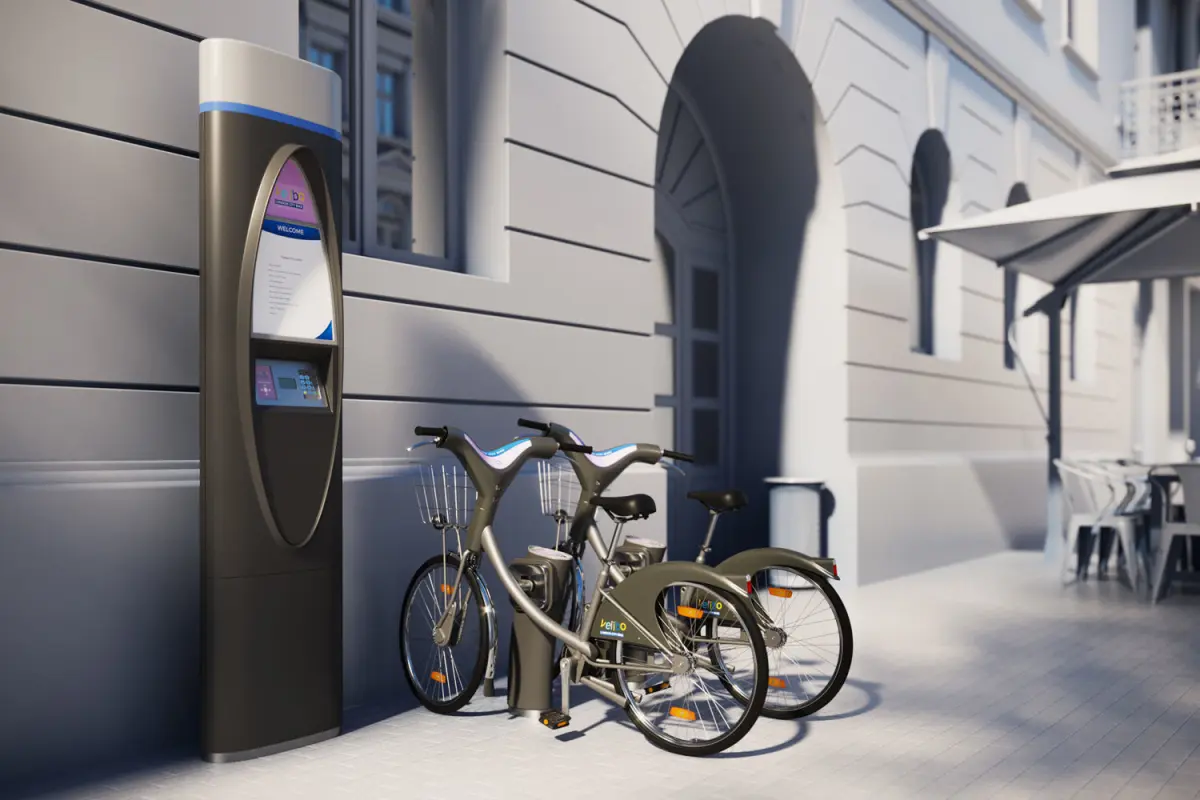 This high quality model includes two bikes in modern shapes. Bicycles closed on a stand. Next to it there is a board with a bike rental system.Model prepared for 3d architectural visualisations and other graphic works.