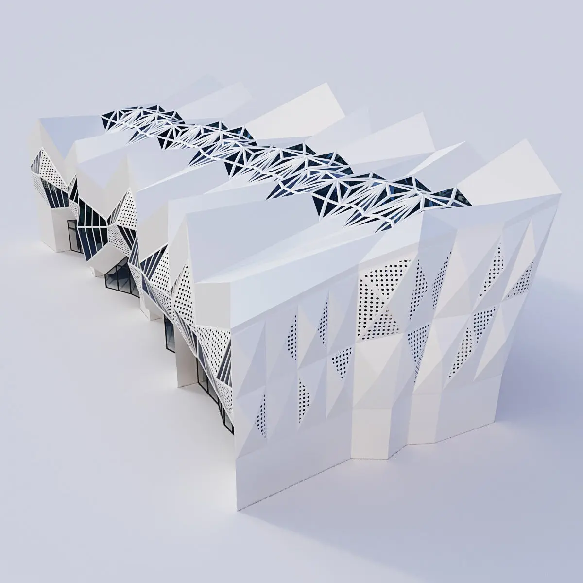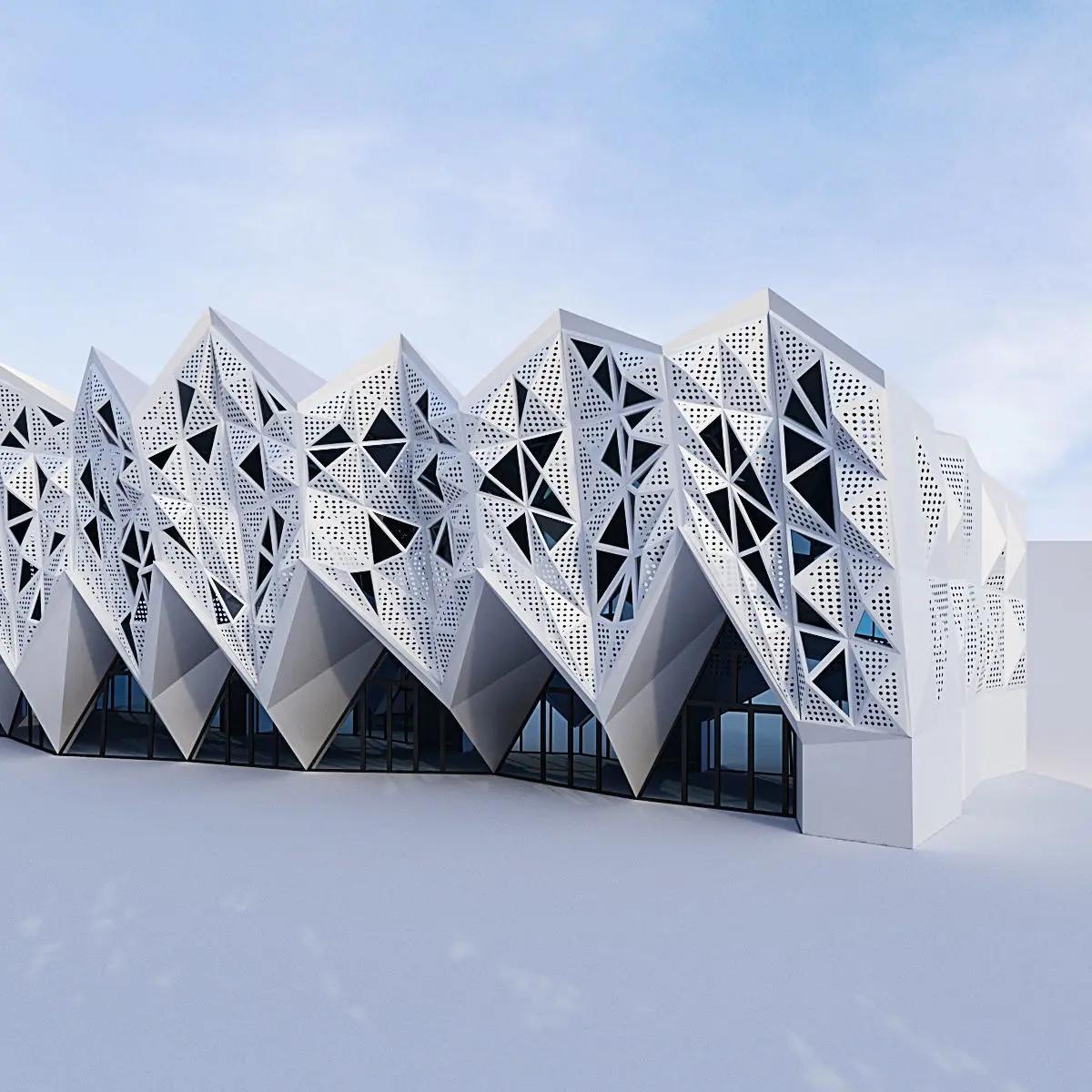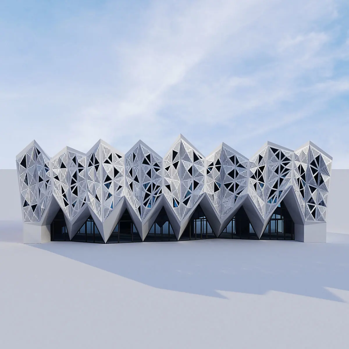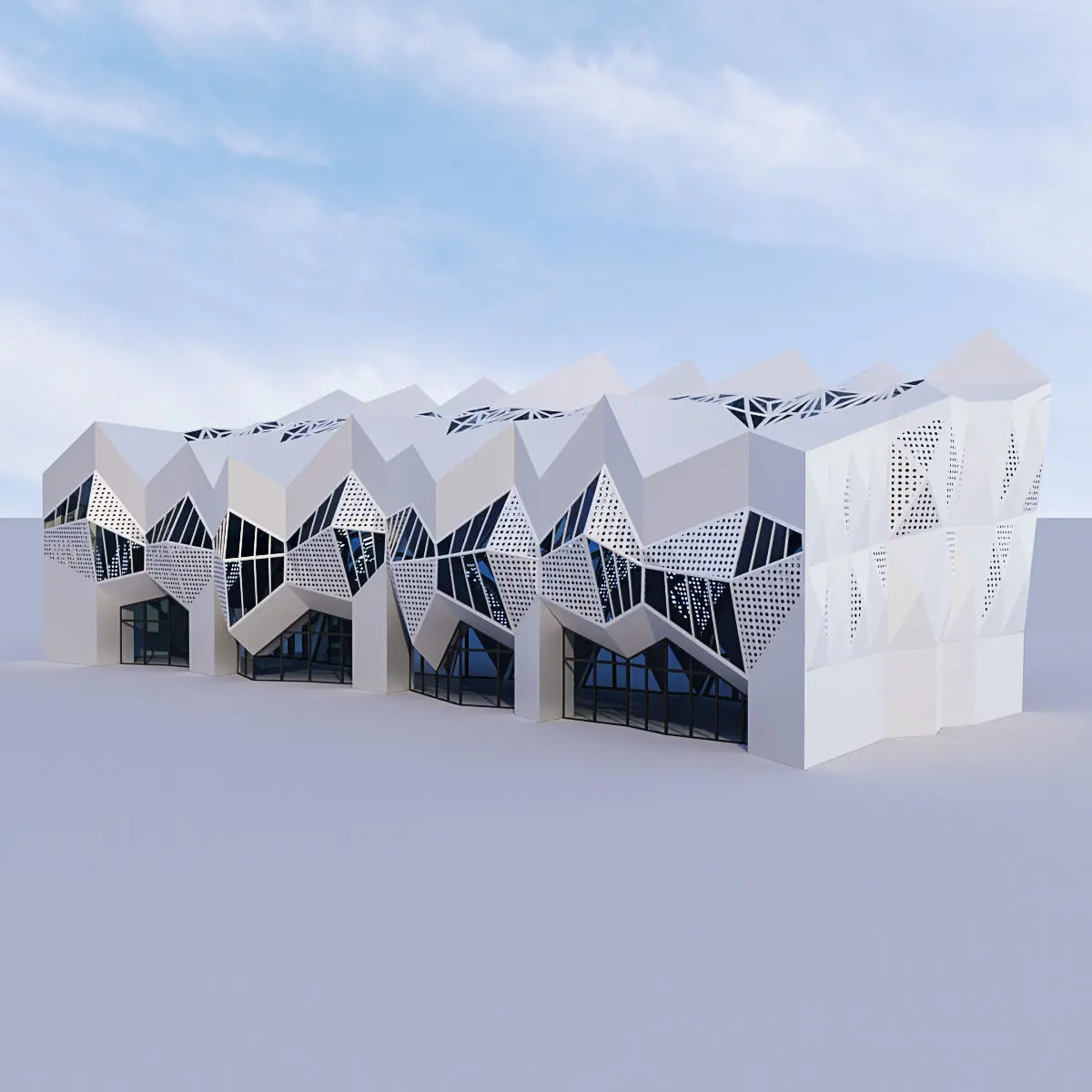 Futuristic building 11Render : Vray, Corona Archives included: materials (mat) Corona, Vray, FBX, obj, model 3ds Max 2014 Vray (3.4) and Corona (2)