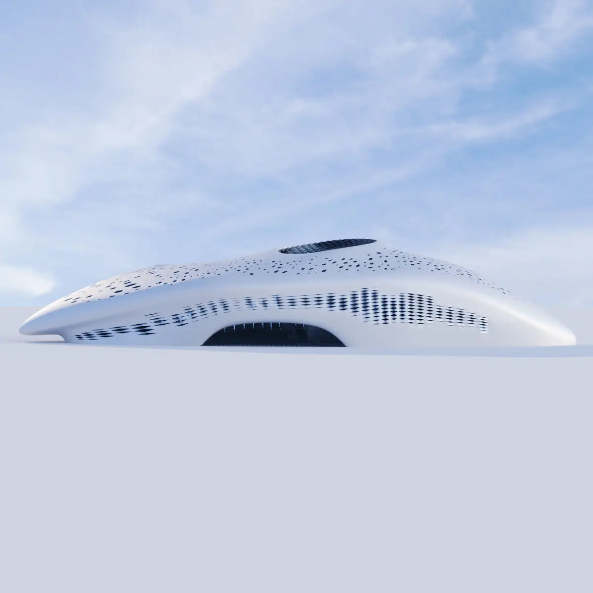 Futuristic building 7Render : Vray, Corona Archives included: materials (mat) Corona, Vray, FBX, obj, model 3ds Max 2014 Vray (3.4) and Corona (2)